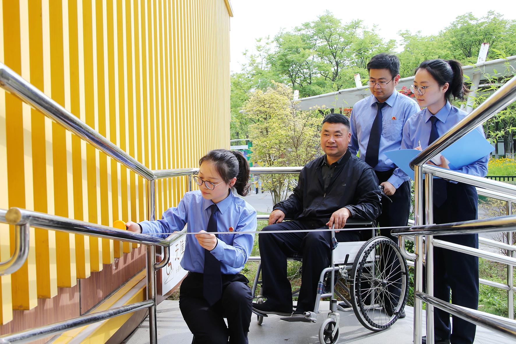 5月13日,在第35個全國助殘日前夕,江蘇省睢寧縣檢察院公益訴訟辦案團(tuán)隊(duì)開展無障礙環(huán)境建設(shè)專項(xiàng)監(jiān)督行動,并陪同殘障人士體驗(yàn)升級改造后的無障礙環(huán)境設(shè)施。