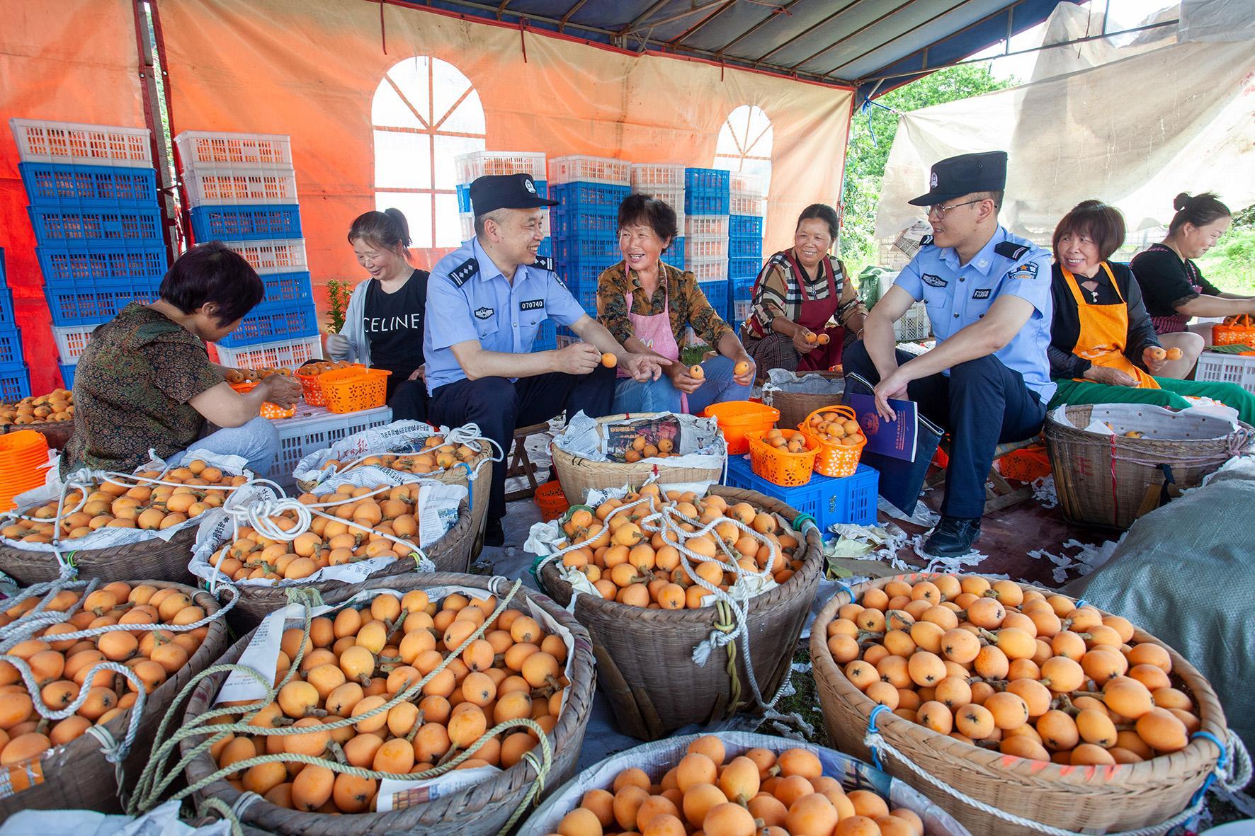 5月15日,浙江省臺州市公安局黃巖分局江口派出所民警在東岙村枇杷收購點走訪,掌握轄區(qū)治安情況,幫助群眾解決實際困難。