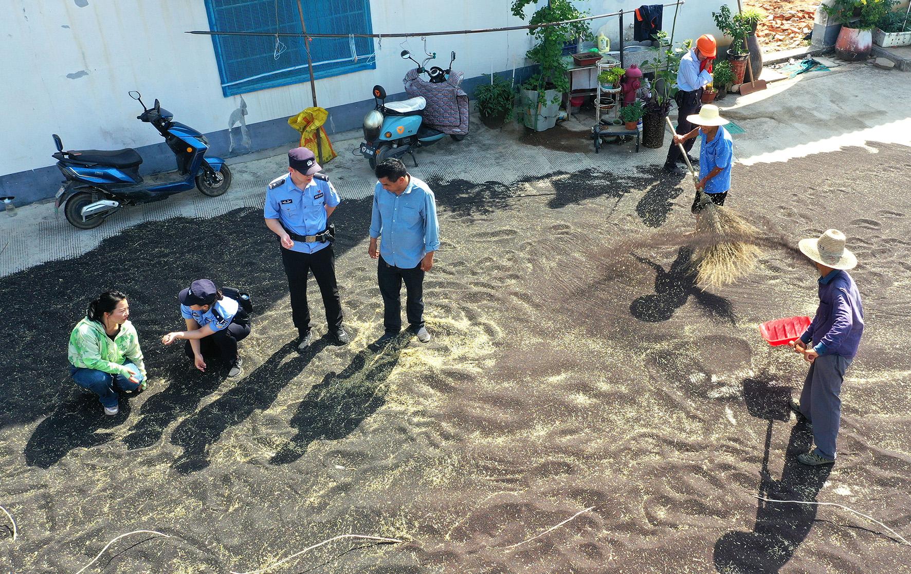 為扎實(shí)做好護(hù)航夏收夏種工作,5月19日,安徽省舒城縣公安局舒茶派出所民警輔警來到轄區(qū)沙墩村油菜籽晾曬場(chǎng),走訪了解群眾所需,全力提供服務(wù)幫助。