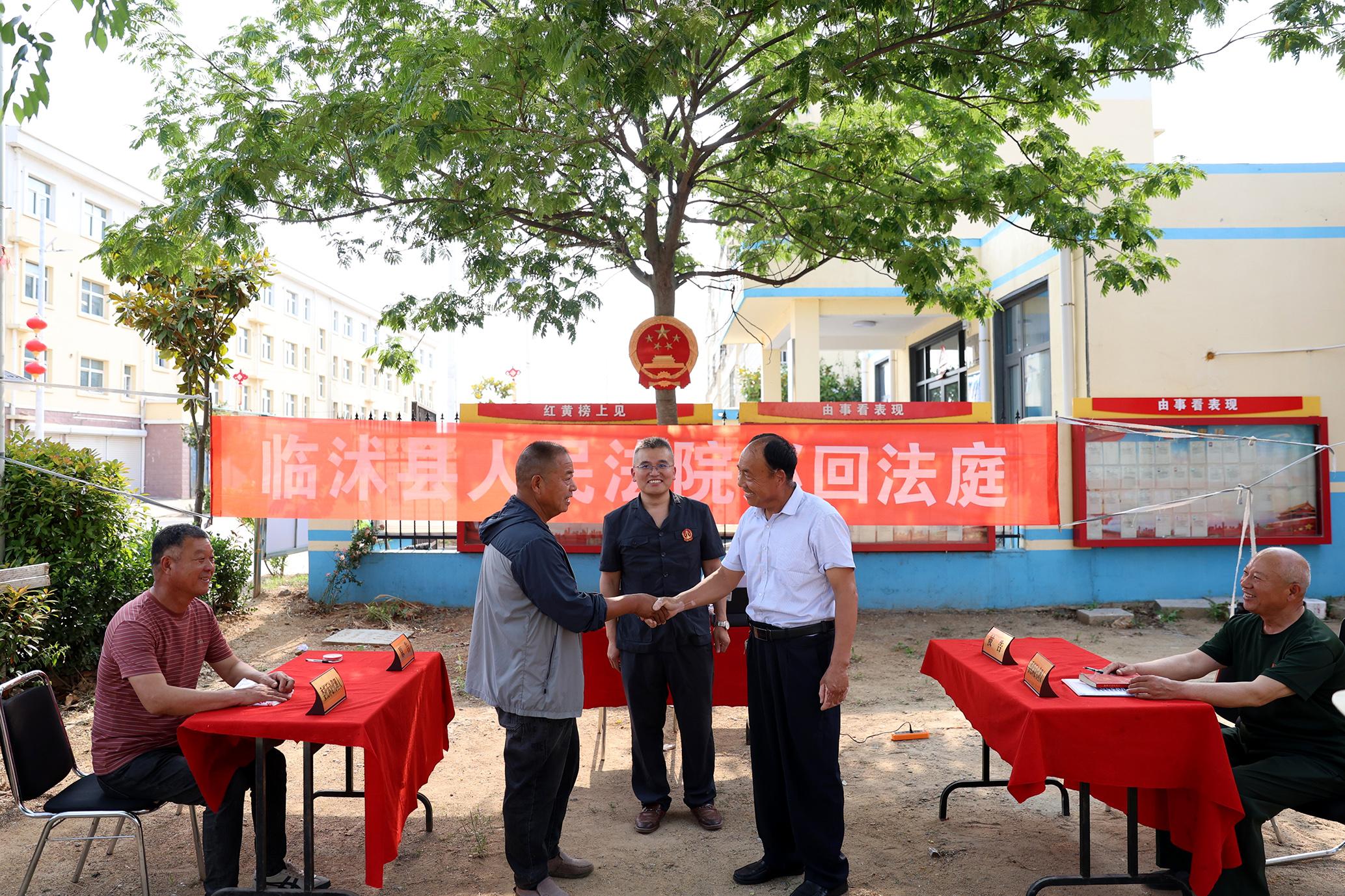 5月21日,山東省臨沭縣人民法院將法庭搬到大興鎮(zhèn)后澇枝西村,對(duì)2起承包合同糾紛、1起承攬合同糾紛開展巡回審判,鎮(zhèn)、村兩級(jí)干部以及村民現(xiàn)場(chǎng)旁聽了庭審。經(jīng)法官現(xiàn)場(chǎng)調(diào)解,3起糾紛以調(diào)解方式妥善化解,并當(dāng)場(chǎng)簽訂調(diào)解協(xié)議。