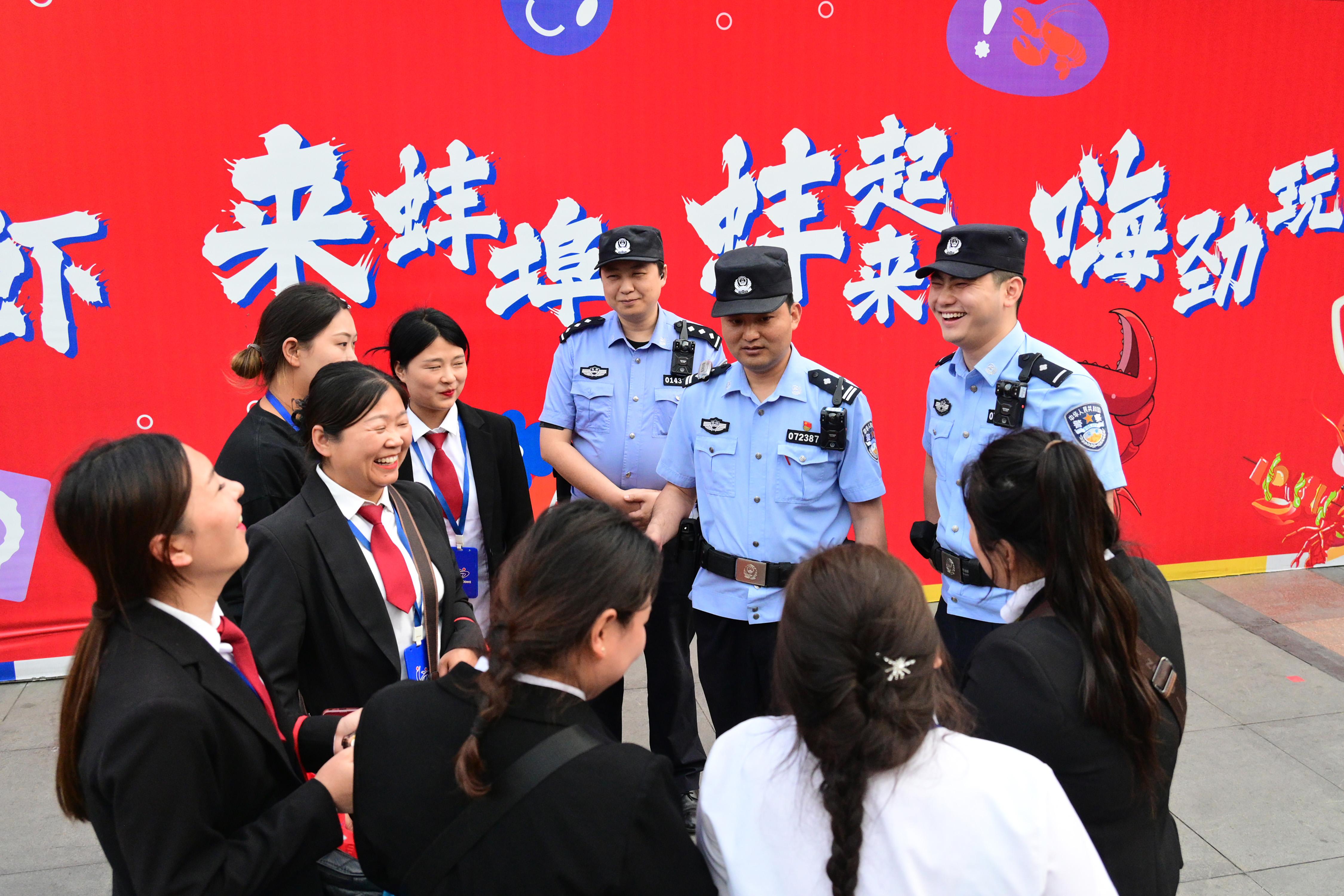 5月23日,安徽省蚌埠市公安局蚌山分局民警輔警在龍蝦節(jié)活動(dòng)現(xiàn)場(chǎng)執(zhí)勤,并開(kāi)展安全宣傳。