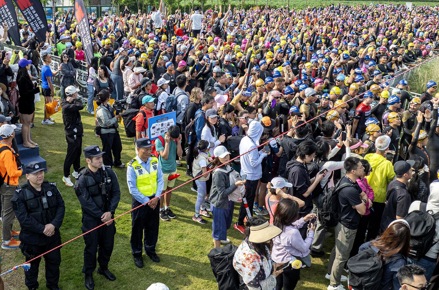 5月25日,上海市公安局崇明分局民警在鐵人三項(xiàng)賽上海站比賽現(xiàn)場(chǎng)執(zhí)勤。