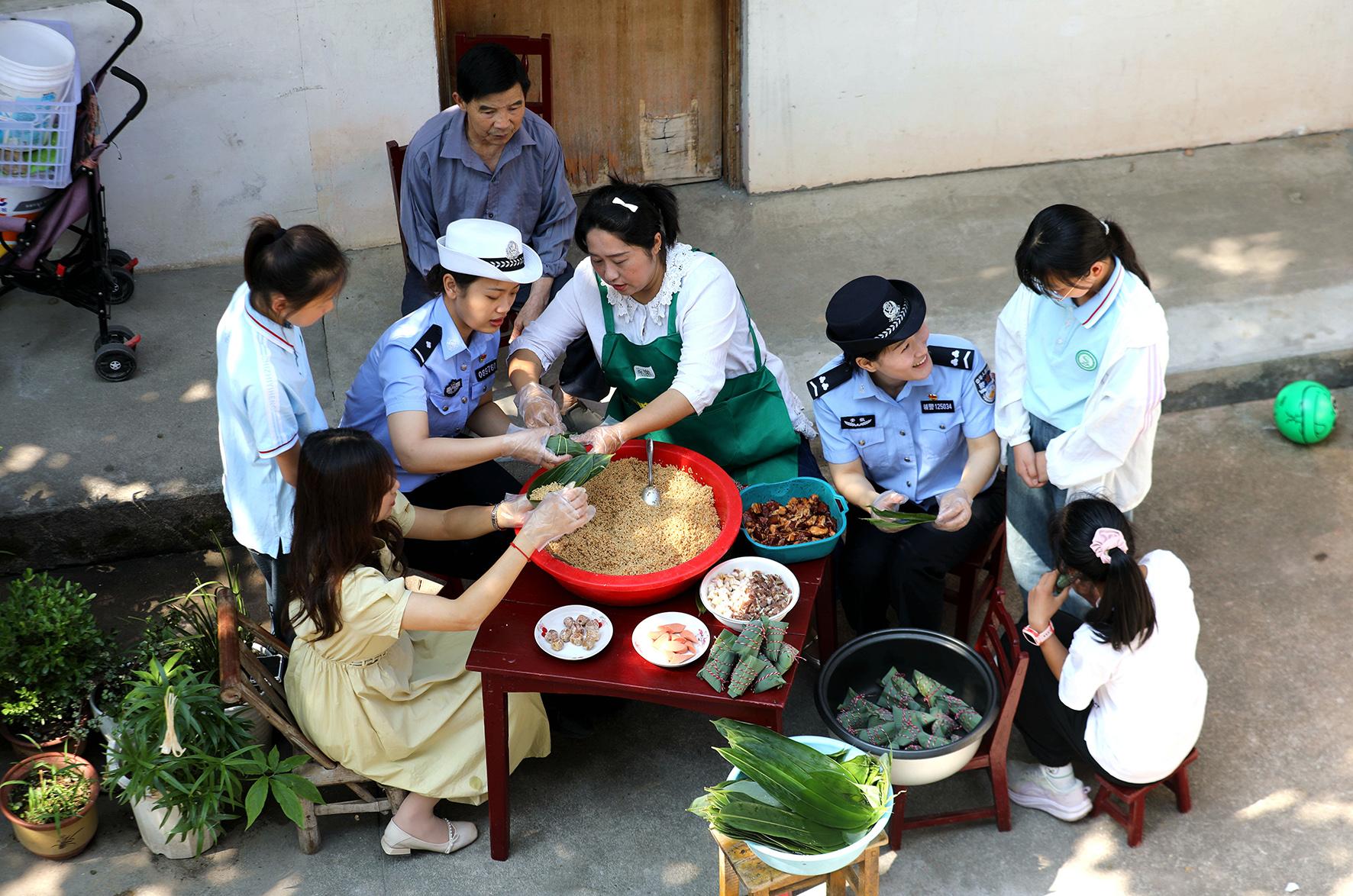 5月29日,安徽省舒城縣公安局交管大隊(duì)、舒茶派出所聯(lián)合溝二口村婦聯(lián)走進(jìn)轄區(qū)村民家,開(kāi)展“迎‘端午’話平安”活動(dòng)。