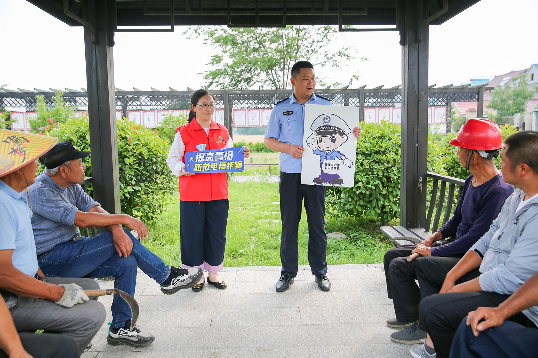 6月3日,江蘇省如皋市公安局高新區(qū)派出所民警走進城南街道夏莊社區(qū)普及防范電信網(wǎng)絡(luò)詐騙知識。