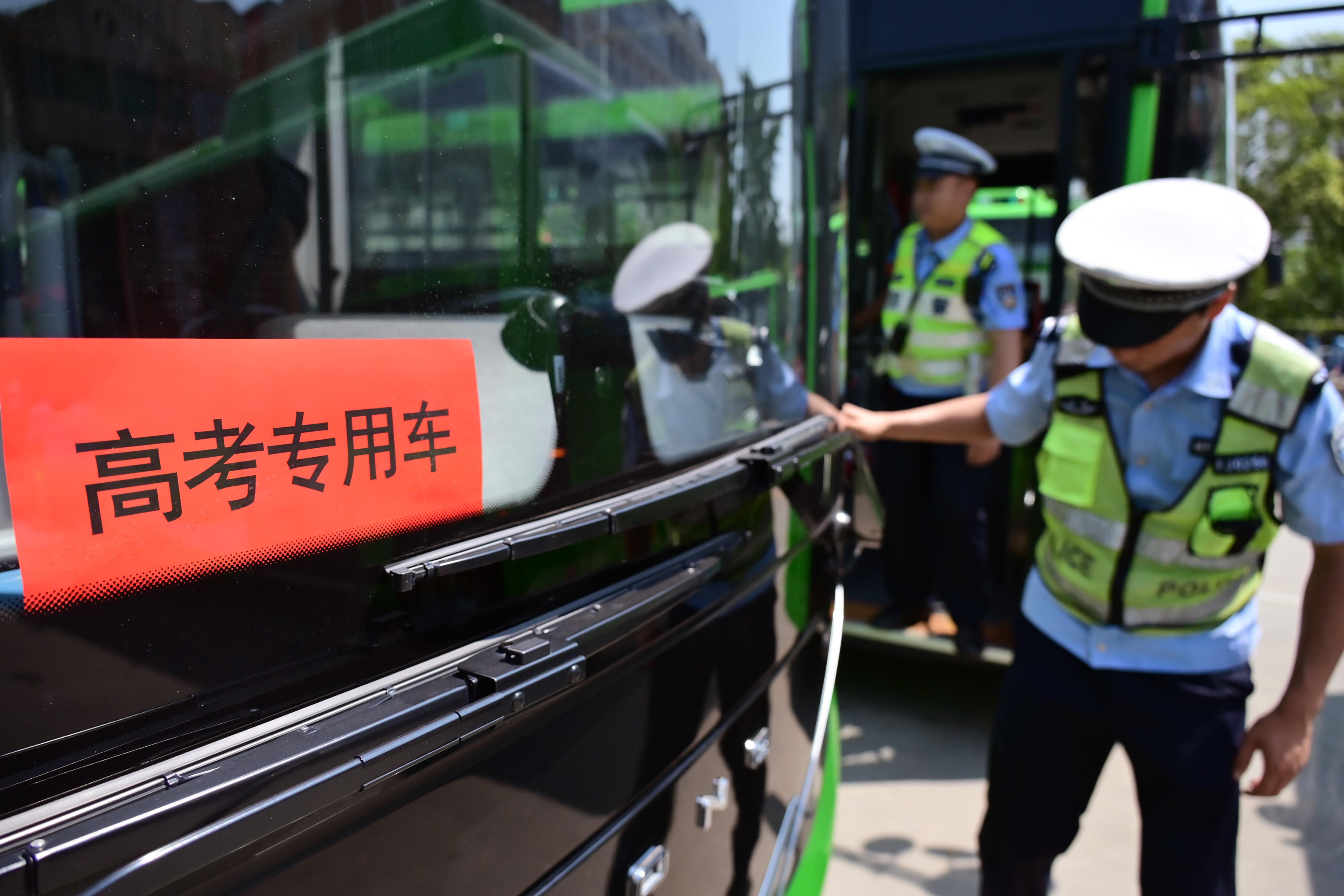 6月4日,安徽省蚌埠市固鎮(zhèn)縣公安局交管大隊(duì)民警輔警在公交公司檢查接送考生車輛,對(duì)駕駛?cè)诉M(jìn)行安全提示。