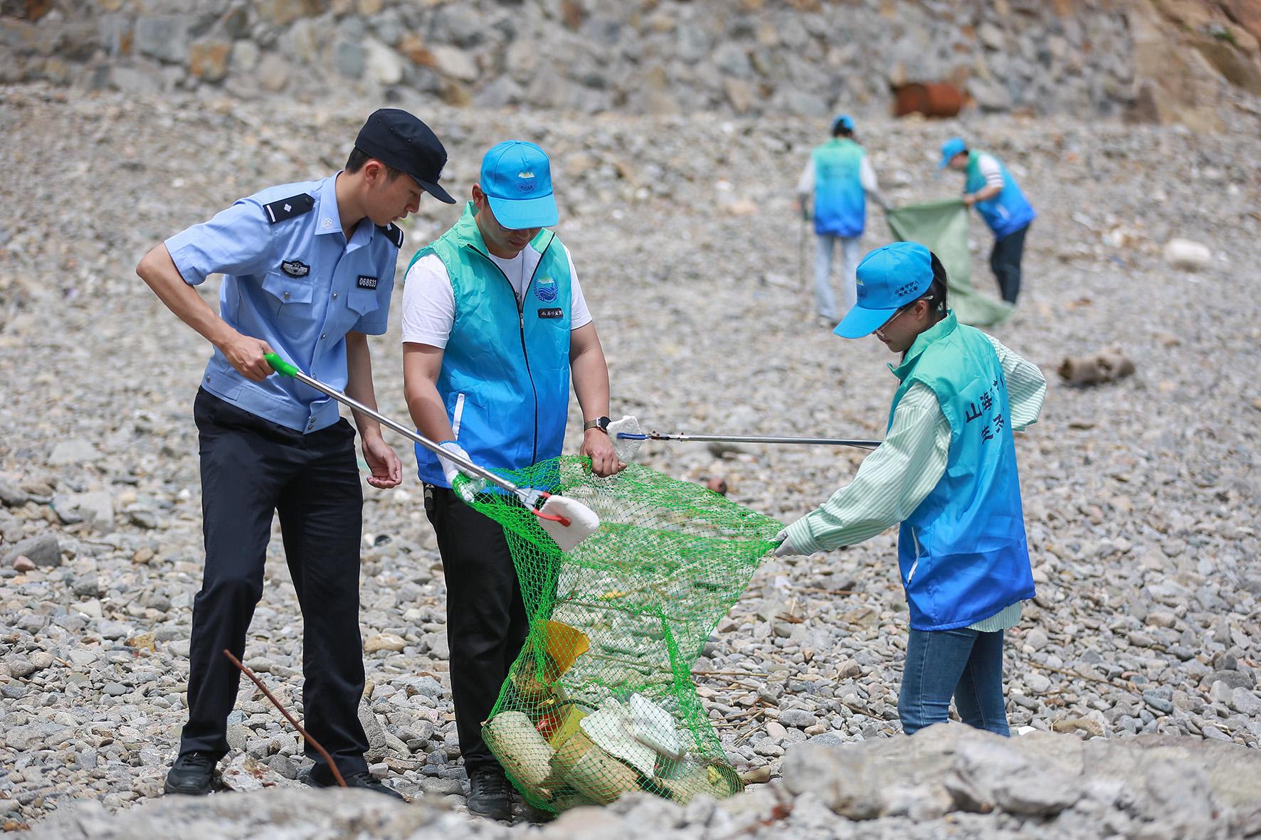 6月5日,浙江省舟山市岱山縣公安局岱東派出所民警聯(lián)合生態(tài)義警開(kāi)展凈灘行動(dòng)。