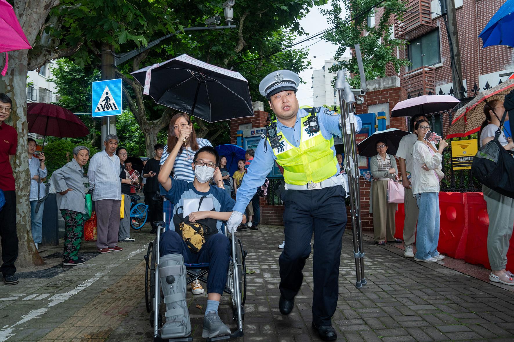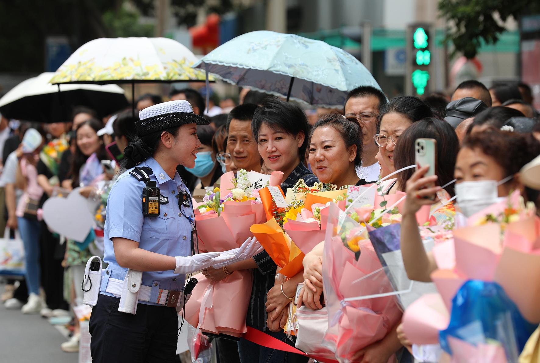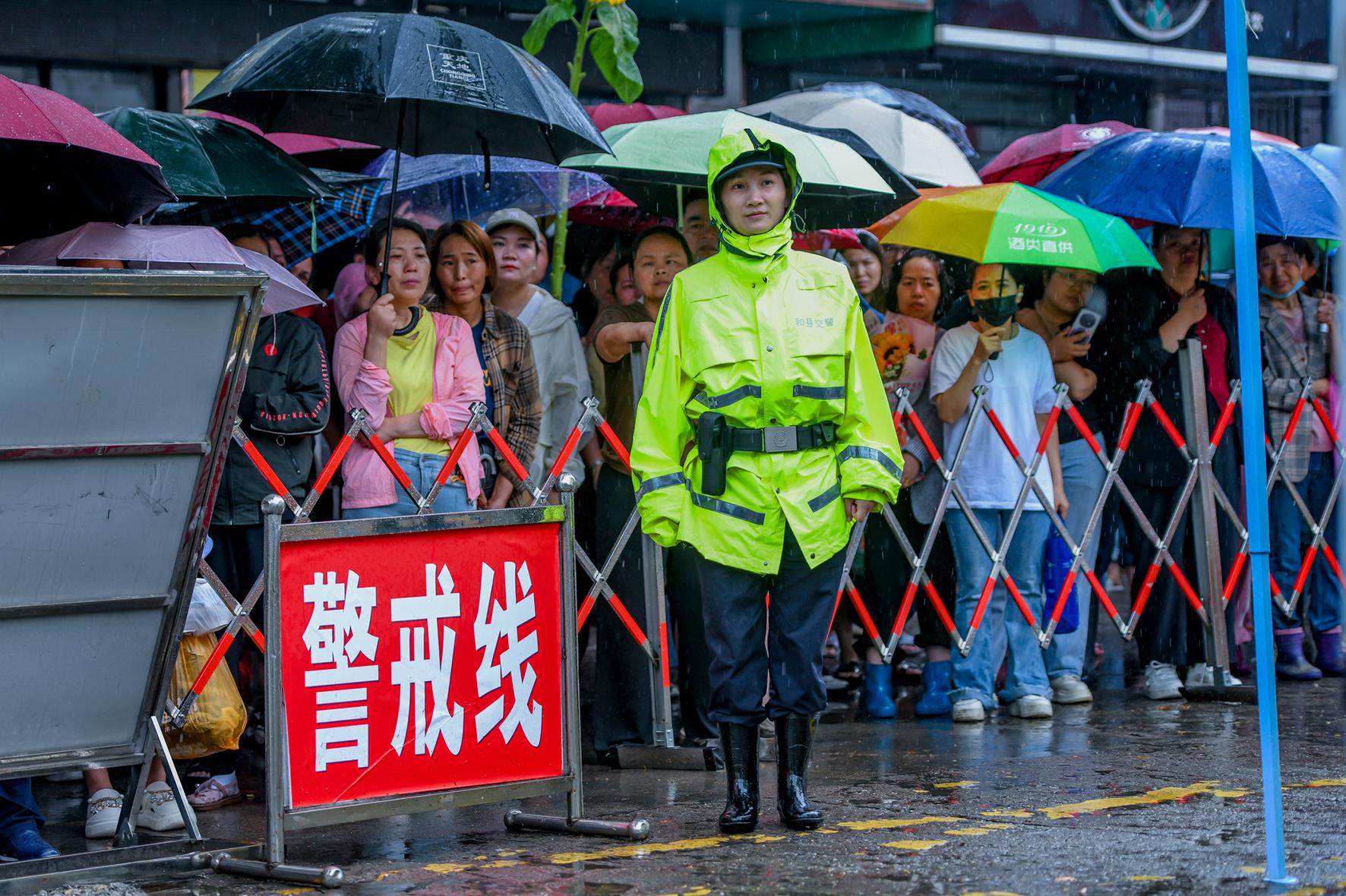 6月7日,江蘇省南通市在雨中迎來高考。南通市公安局民警全警動員,堅守崗位,護(hù)航學(xué)子圓夢。