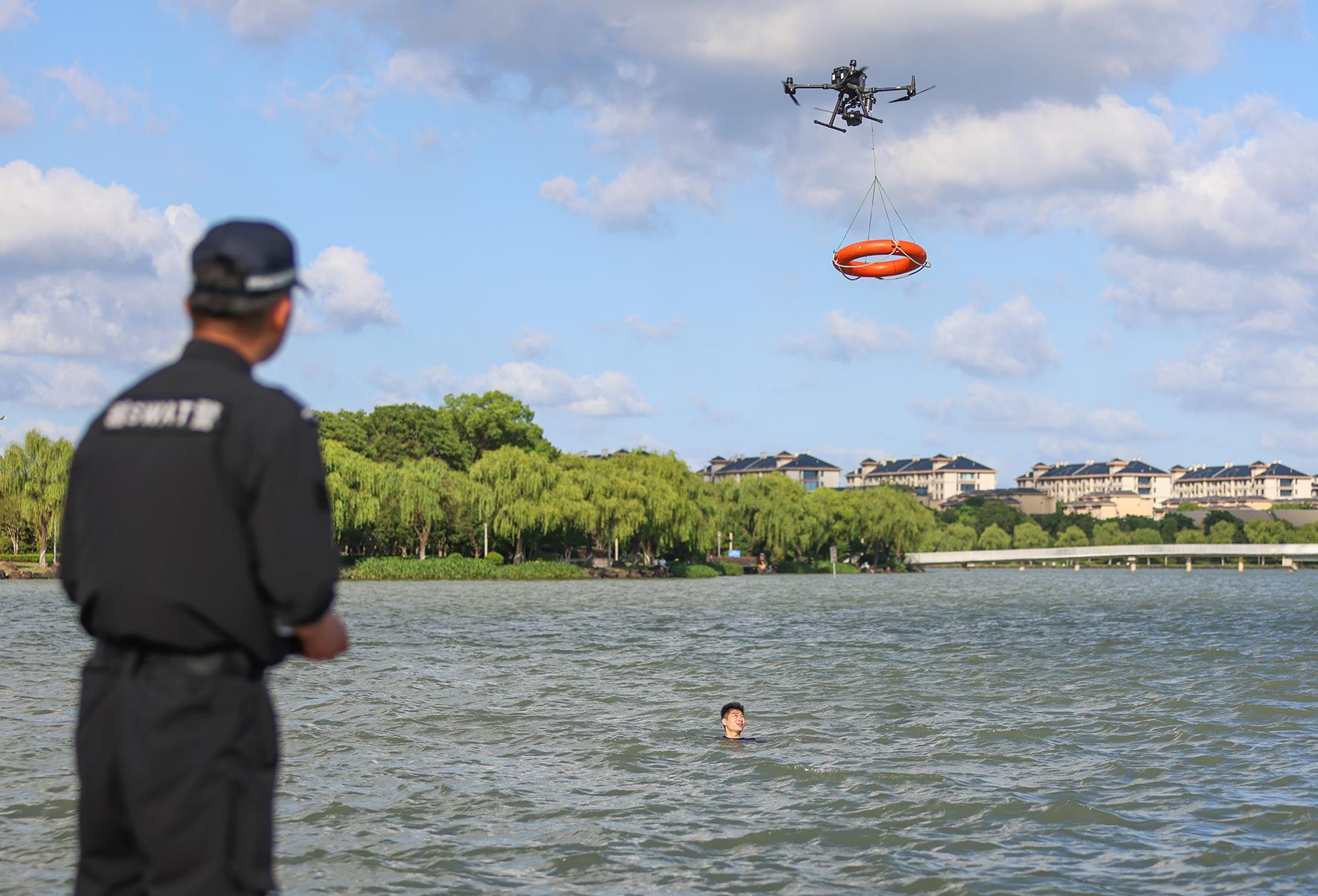 7月9日,浙江省嘉興市公安局南湖區(qū)分局巡特警大隊開展水上防汛應急救援演練。演練設置緊急集合、穿戴救援裝備、駕駛救援沖鋒艇、拋投救援繩和無人機拋投救生圈等科目,進一步提升了應對汛期災害和突發(fā)事件的應急處置能力。