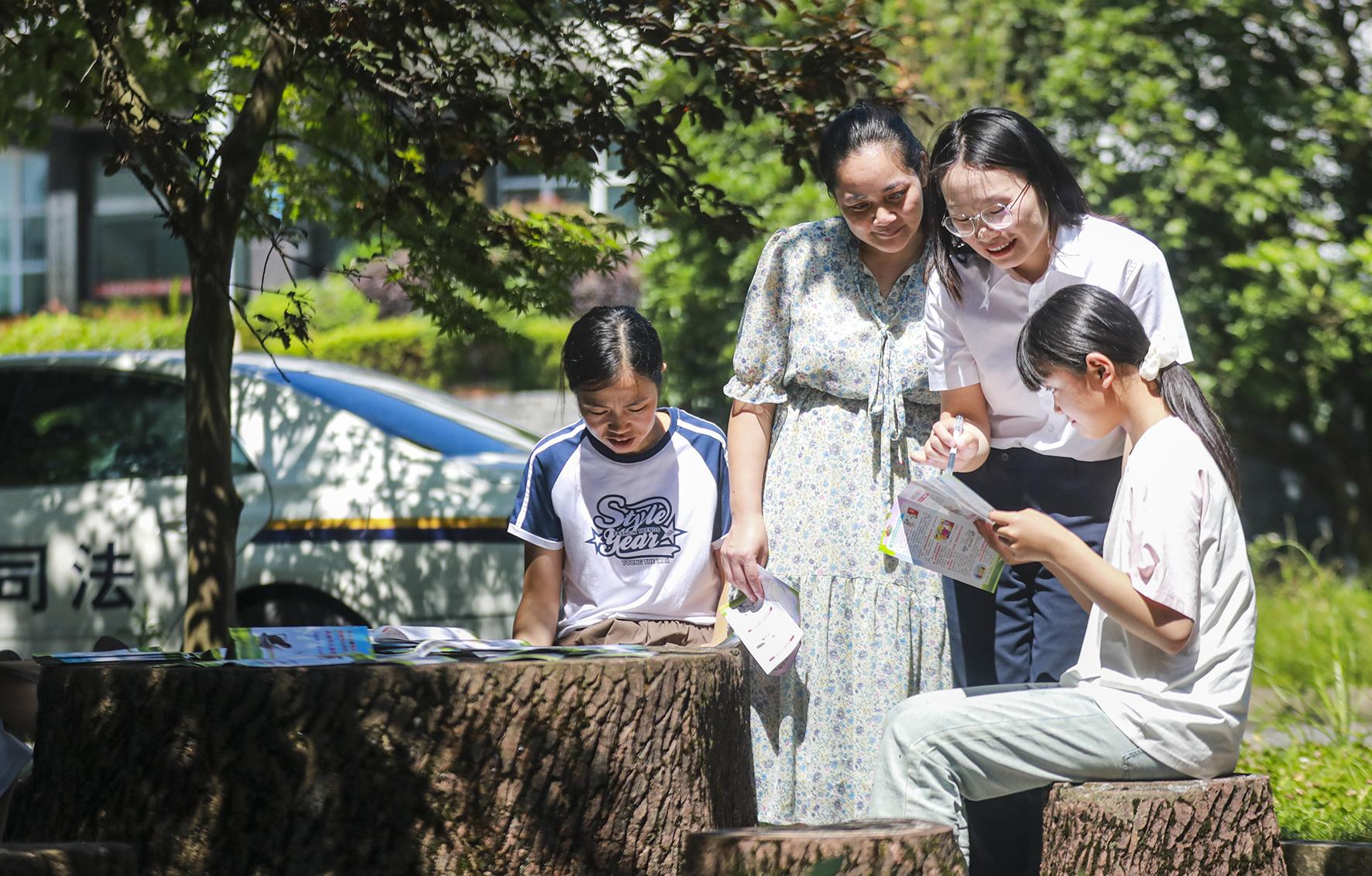 圖為7月15日,司法局工作人員在谷里鎮(zhèn)香山社區(qū)指導(dǎo)孩子們學(xué)習(xí)健康上網(wǎng)知識(shí)。