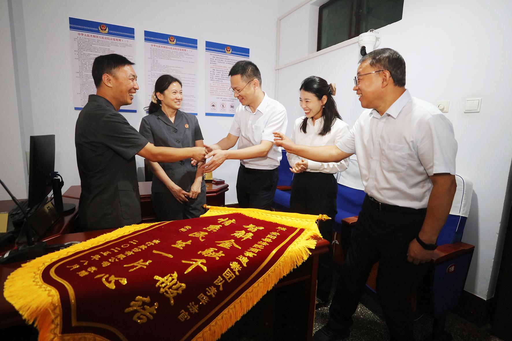 8月4日,河南省安陽縣人民法院法官利用周末上門調(diào)解一起金融借款合同糾紛案后,當(dāng)事人將一面印有“智解金融千般結(jié) 情系民生一片心”的錦旗送到了法官手中,以表謝意。