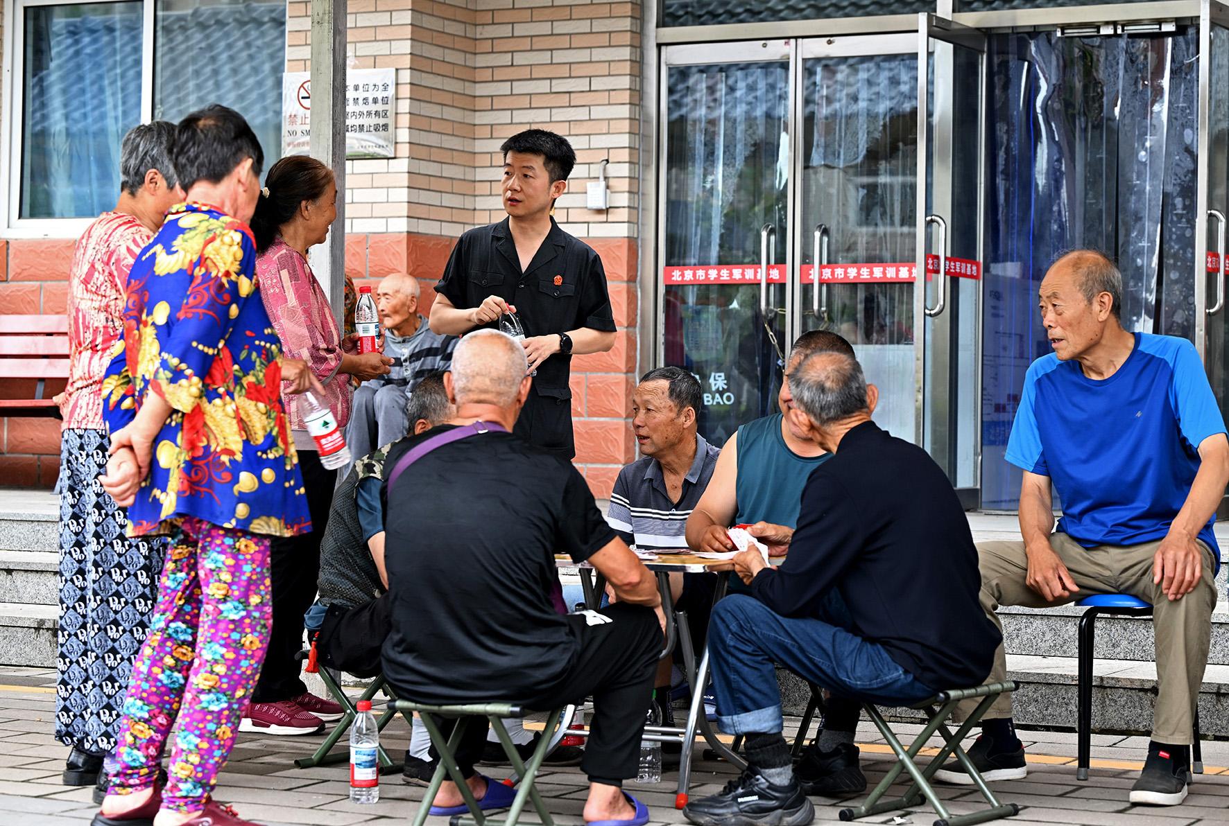 在懷柔區(qū)最大的受災群眾安置點,懷柔區(qū)人民法院與區(qū)人民檢察院的干警均馳援在此,為群眾提供餐食分發(fā)、情緒疏導、法律咨詢等服務?!拔艺J識你們,今年5月,你們還去村里給我們普過法?!卑仓命c池大媽的一句話,讓渾身是汗的懷柔區(qū)人民法院湯河口法庭副庭長周科露出了笑容。