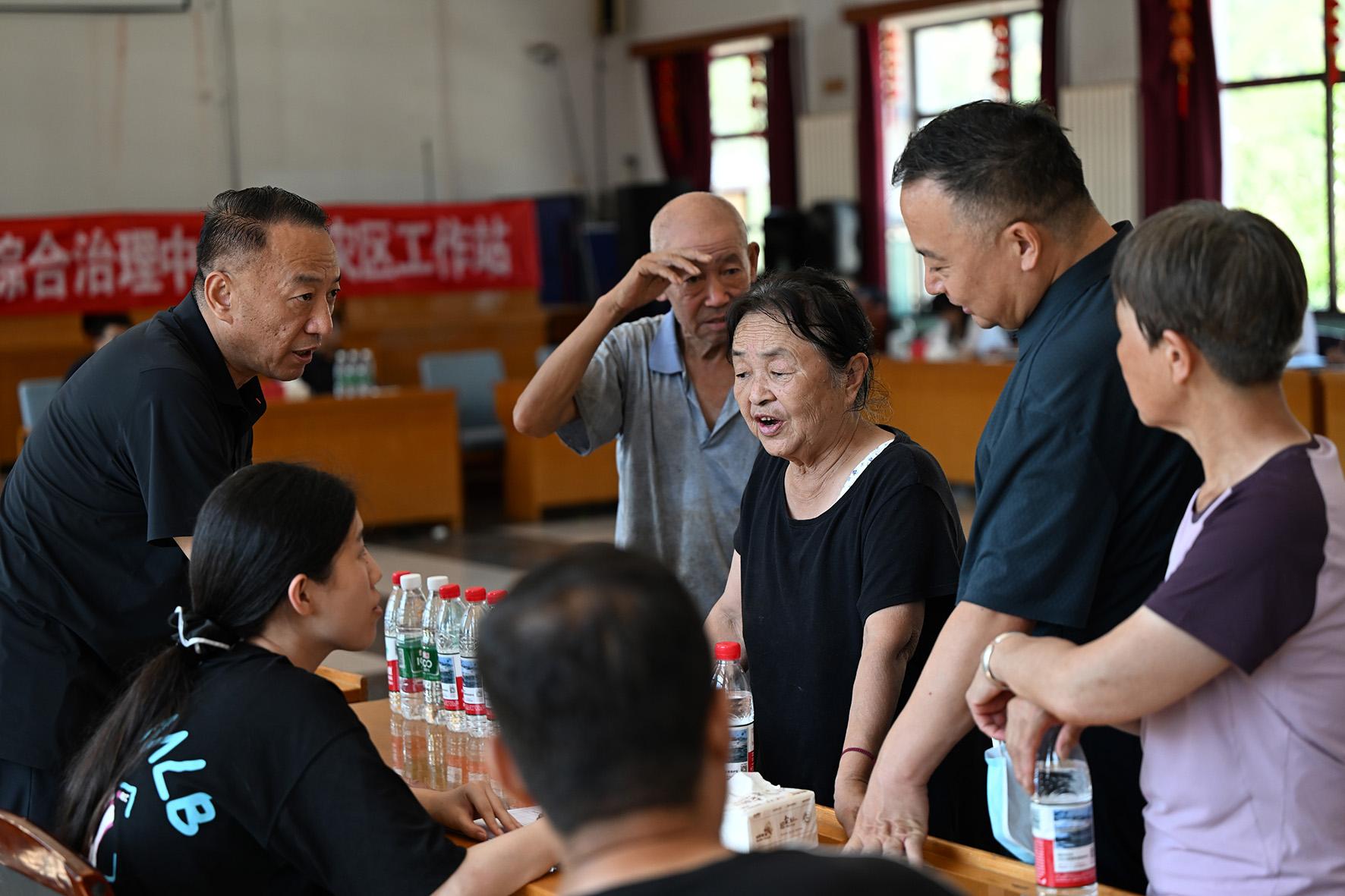 8月6日,臨時“綜治中心”秩序井然,懷柔區(qū)人民法院、北京市公安局懷柔分局、懷柔區(qū)司法局、懷柔區(qū)農業(yè)農村局等職能部門窗口的工作人員都耐心回應著村民的每一個訴求。