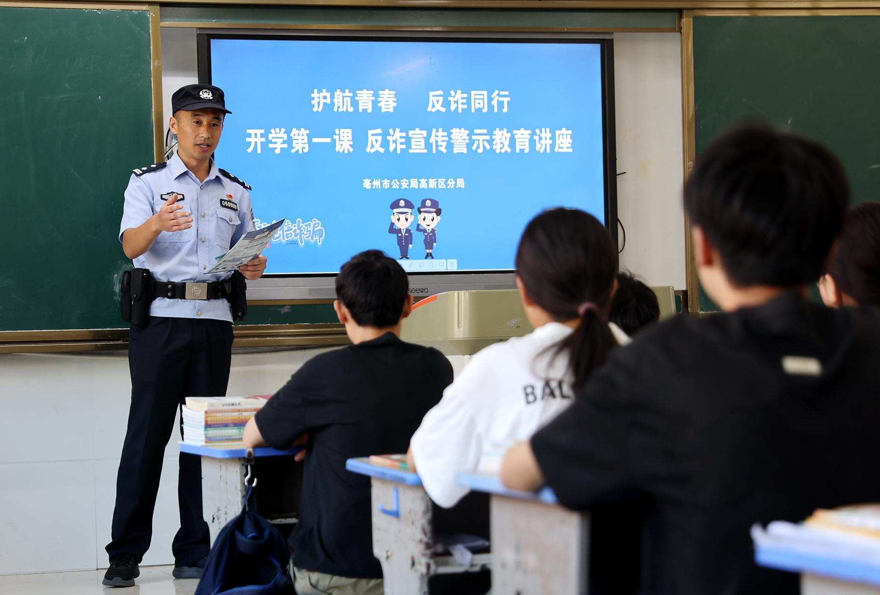 9月1日,安徽省亳州市公安局高新區(qū)分局民輔警走進轄區(qū)學(xué)校開展“開學(xué)第一課”活動,不斷提升廣大師生的安全防范意識。