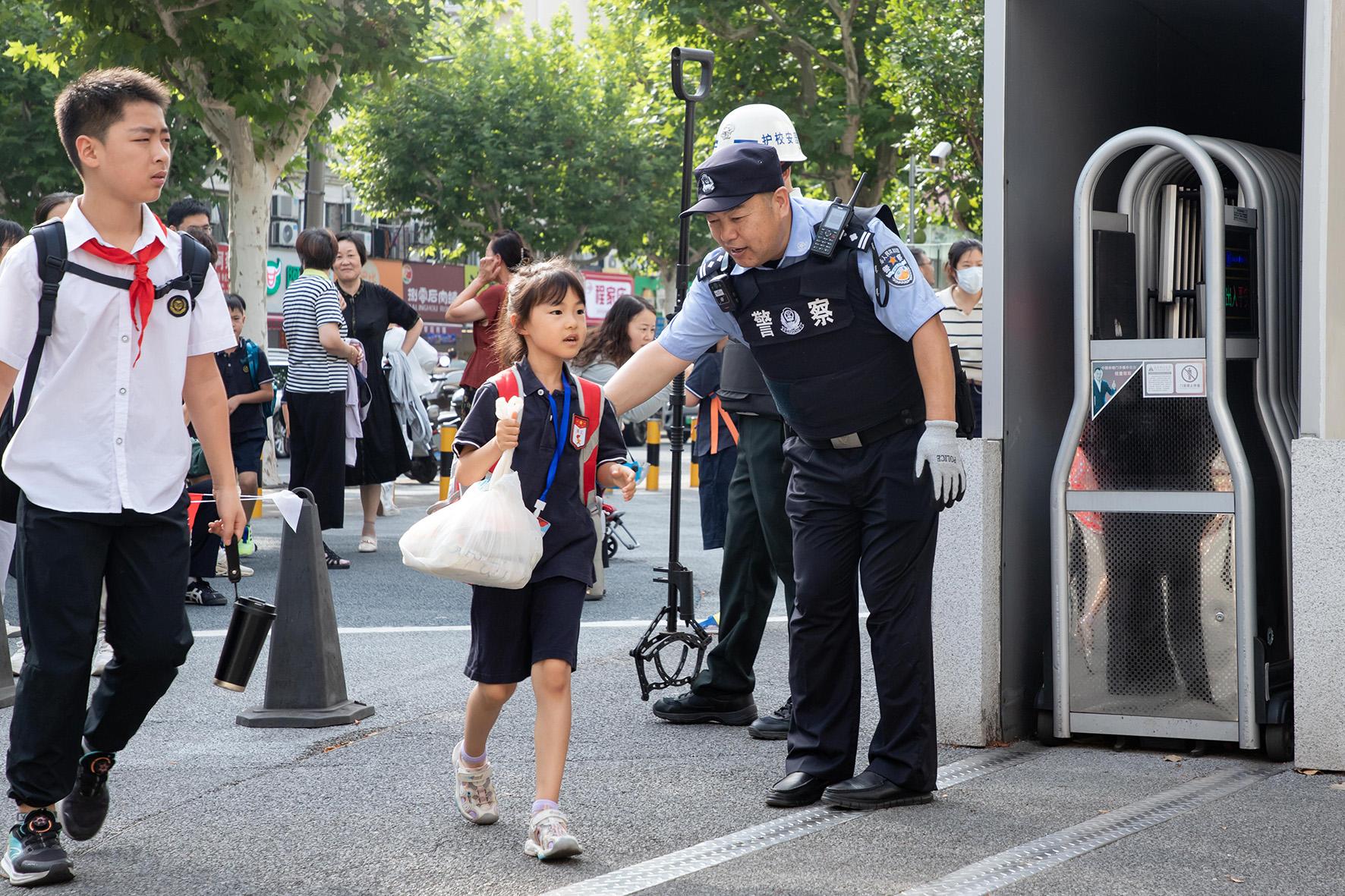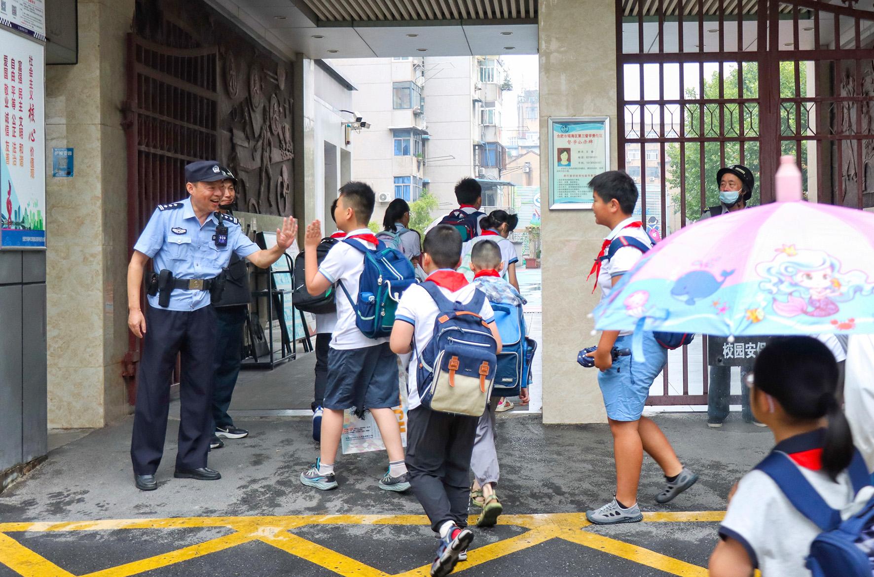 9月1日,安徽省合肥市公安局瑤海分局大通路派出所民警在滁州路小學(xué)護學(xué)崗執(zhí)勤。