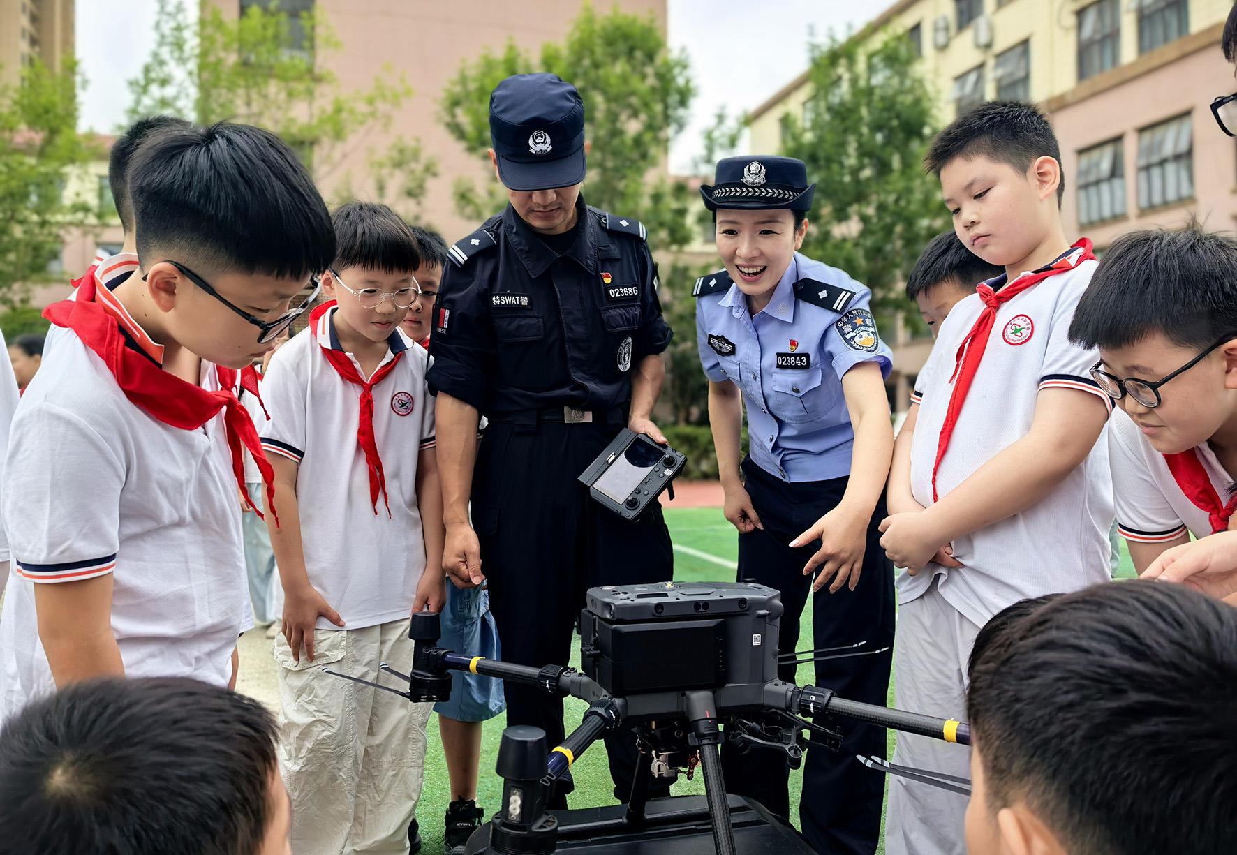 9月1日,安徽省當(dāng)涂縣中小學(xué)校迎來開學(xué)季。當(dāng)涂縣公安局民警走進實驗學(xué)校釜山路校區(qū),通過警用無人機演示、交通安全宣傳、防校園霸凌宣講等形式為同學(xué)們送上“開學(xué)第一課”。