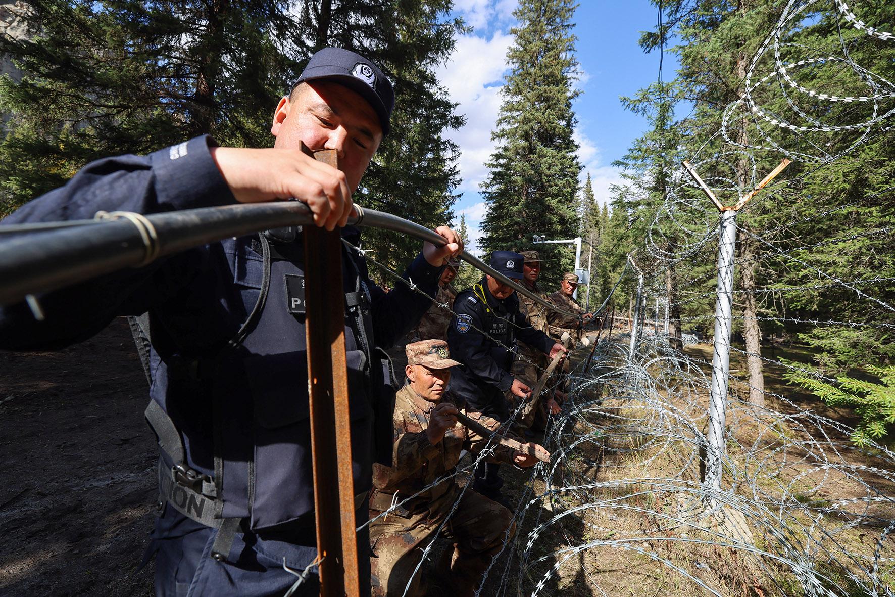 9月18日,新疆阿勒泰邊境管理支隊吐爾洪邊境派出所組織民警對阿拉爾夏牧場區(qū)域開展巡邊踏查、修繕邊境設(shè)施等工作。