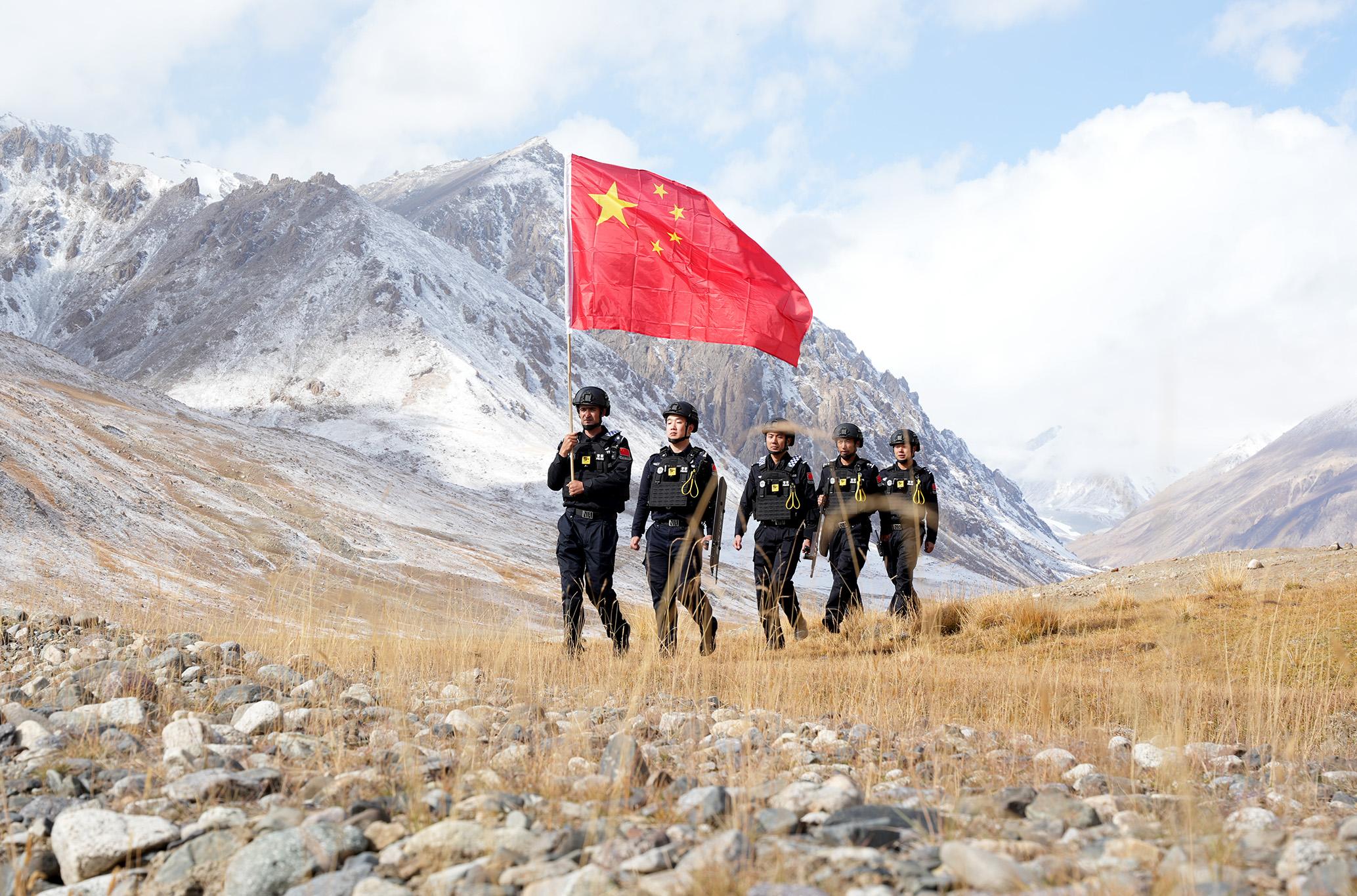 9月25日,新疆喀什邊境管理支隊回紅其拉甫邊境派出所組織民警前往邊境一線開展巡邏踏查。