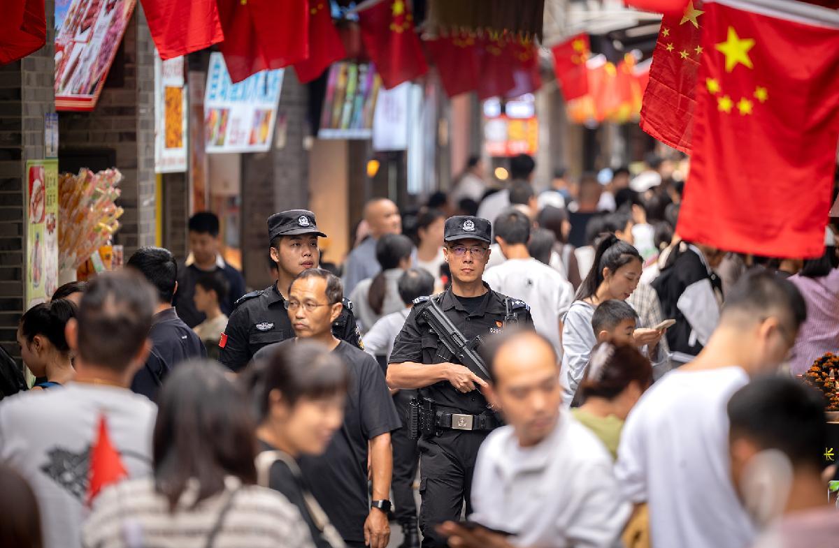 10月2日,福建省福州市公安局在三坊七巷歷史文化街區(qū)巡邏執(zhí)勤。