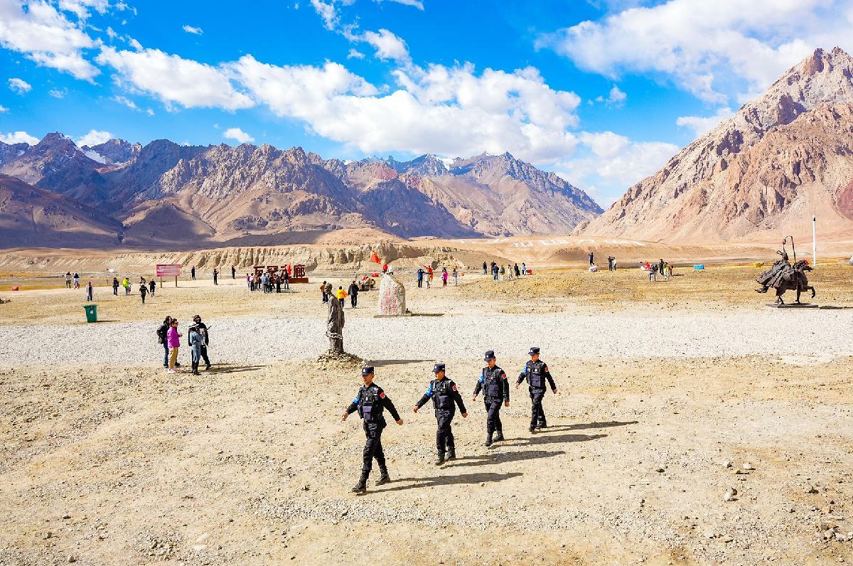 10月1日,新疆喀什邊境管理支隊塔什庫爾干邊境管理大隊在轄區(qū)各個景區(qū)部署警力,為游客安全出行保駕護航。