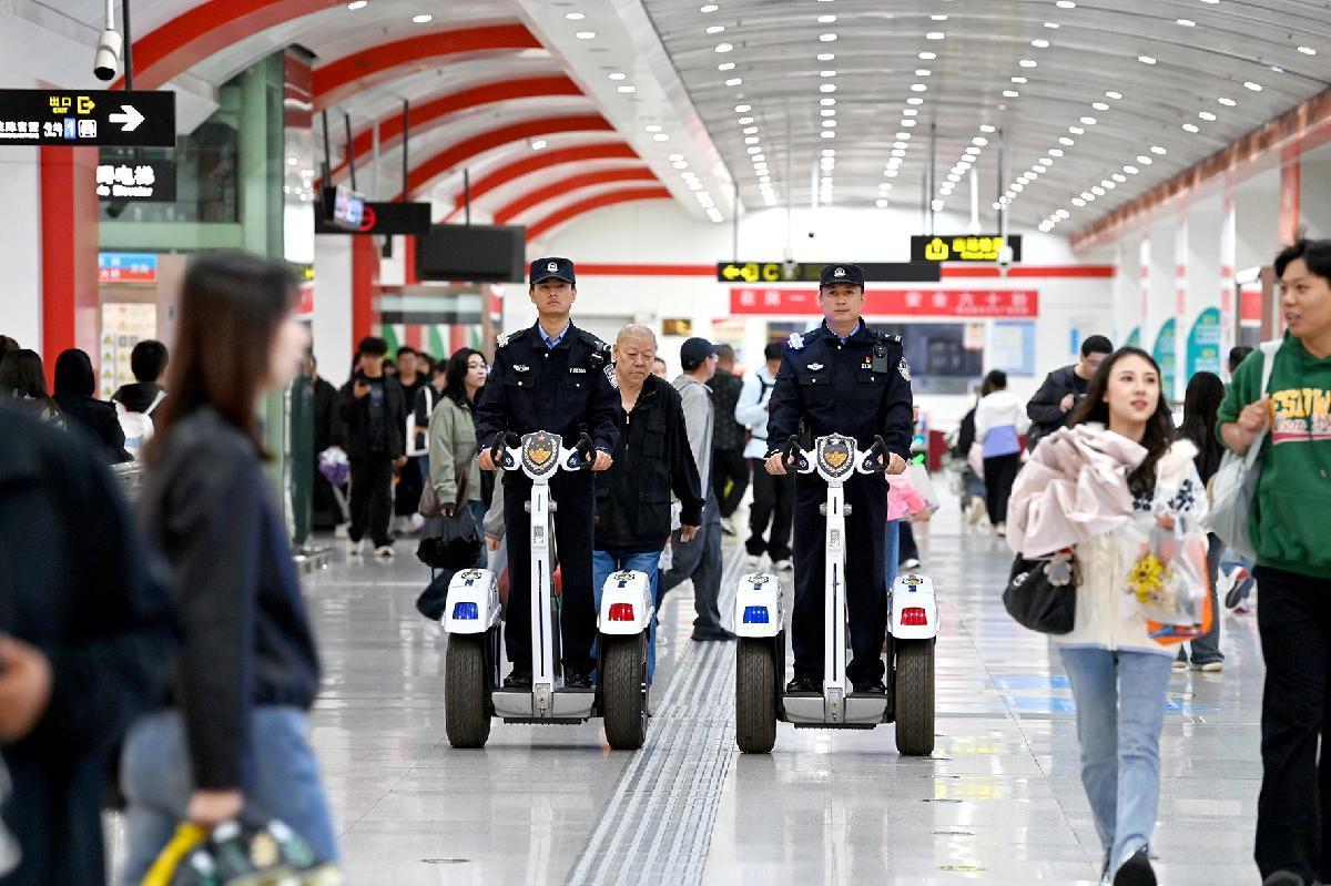 10月1日,西安鐵路公安局西安公安處科學部署警力,全力維護治安秩序穩(wěn)定,確保旅客出行安全。