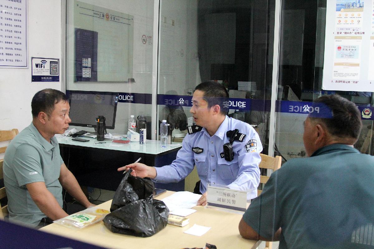 10月1日,上海市公安局嘉定分局婁塘派出所民警在調解室耐心調解一起鄰里糾紛。