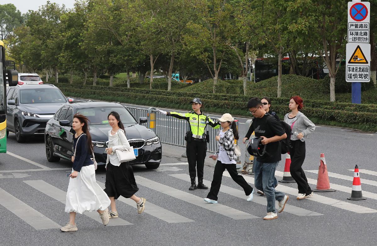 10月1日,安徽省合肥市公安局交通管理支隊濱湖大隊在環(huán)湖大道及周邊主干道加大警力部署,疏導車流,保障巢湖環(huán)線安全、暢通、有序。