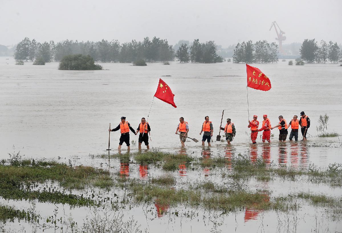 10月1日,湖北省鐘祥市公安局柴湖派出所民警和民兵應急分隊組成巡查隊,在柴湖鎮(zhèn)漢江堤防開展“拉網(wǎng)式”排查。