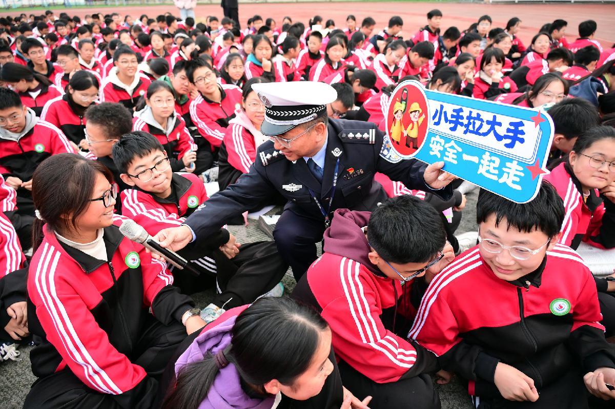10月29日,安徽省固鎮(zhèn)縣公安局交管大隊(duì)民警在實(shí)驗(yàn)中學(xué)為學(xué)生上交通安全課。