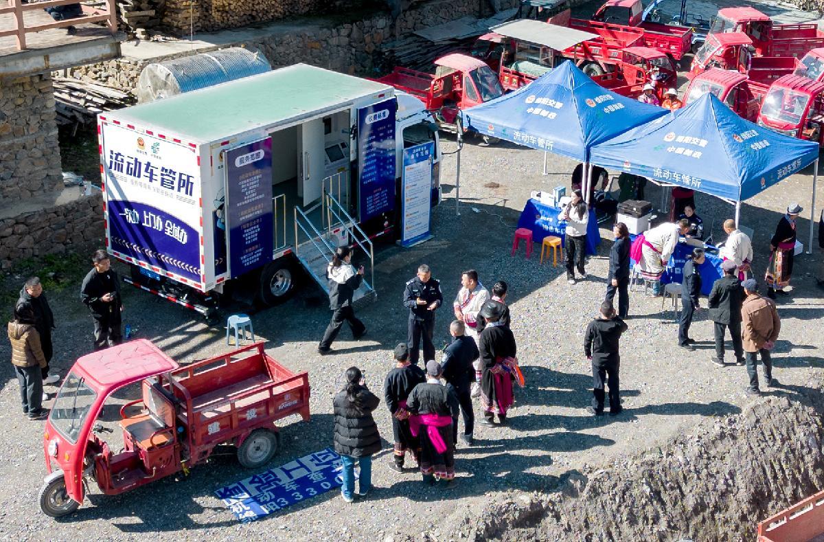 10月30日,四川省綿陽市公安局交通警察支隊將“流動車管所”開進平武縣白馬藏族鄉(xiāng)扒昔加古寨,為周邊群眾帶來家門口的車駕管服務(wù)。