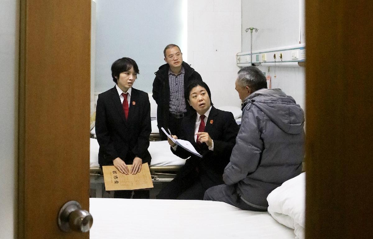 11月11日,河南省安陽縣人民法院組織干警來到醫(yī)院病房,對一起機動車交通事故責(zé)任糾紛案進行巡回辦案,方便當(dāng)事人參與訴訟。