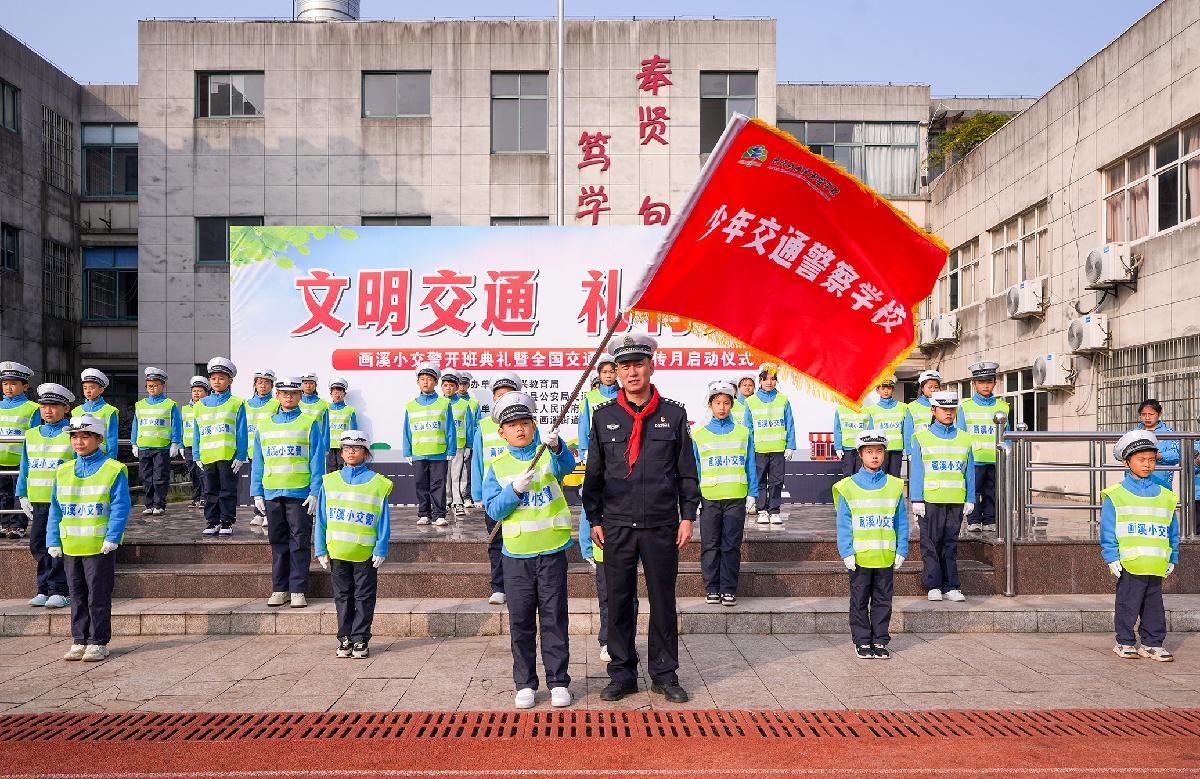 12月1日,浙江省長興縣公安局交管大隊攜手畫溪街道包橋中心小學成立少年交通警察學校,并以“文明交通 禮行天下”為主題,舉行了莊重的授旗儀式。