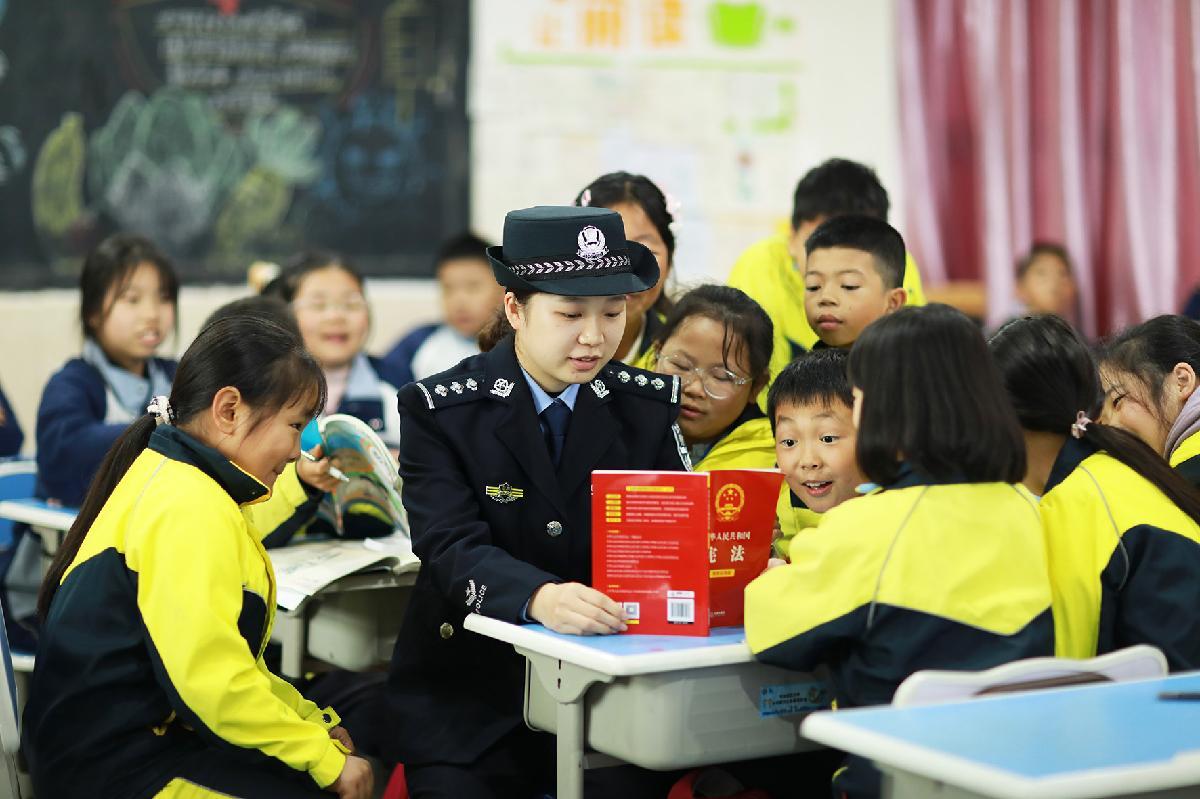 12月2日,安徽省合肥市公安局瑤海分局勝利路派出所民警走進(jìn)轄區(qū)學(xué)校,開展“憲法宣傳進(jìn)校園”主題宣傳。