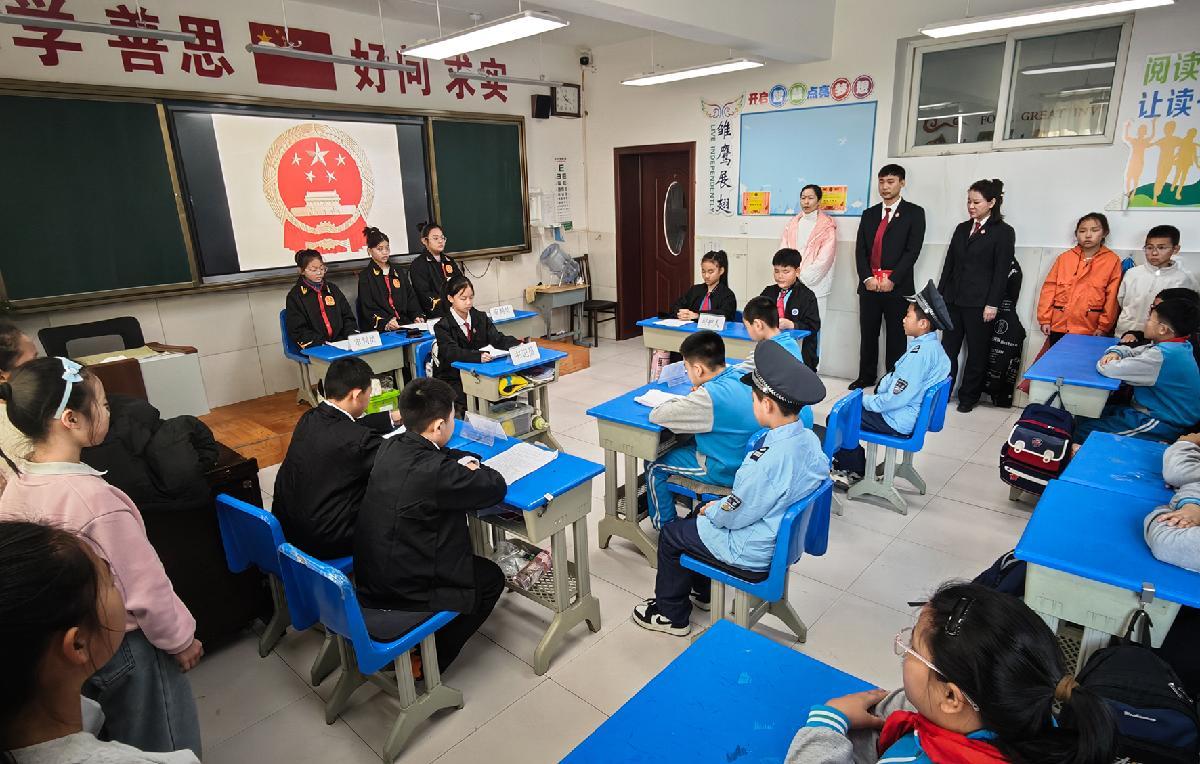 12月1日,吉林省四平市鐵西區(qū)人民法院法官走進(jìn)陽光實(shí)驗(yàn)小學(xué),通過模擬法庭的形式開展憲法宣傳。