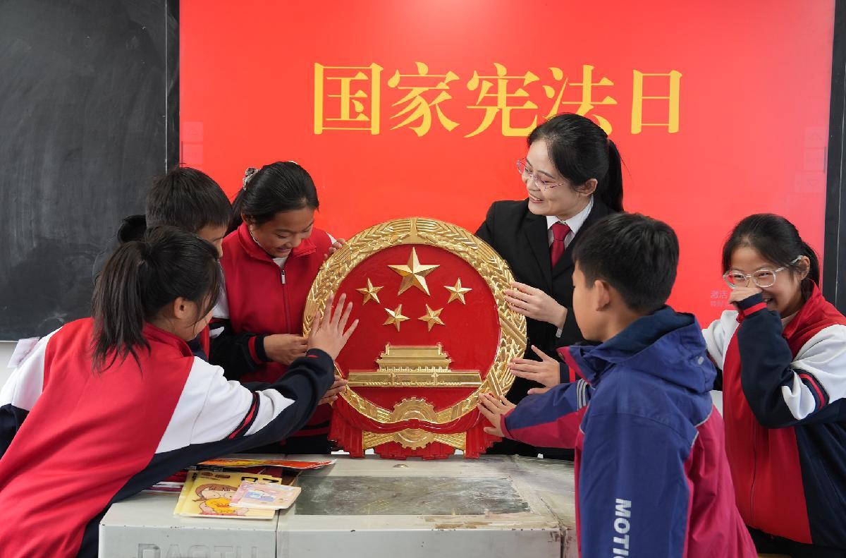 12月3日,安徽省六安市裕安區(qū)人民法院聯(lián)合六安市城北小學(xué)開展“弘揚(yáng)憲法精神 爭做守法少年”主題宣傳。