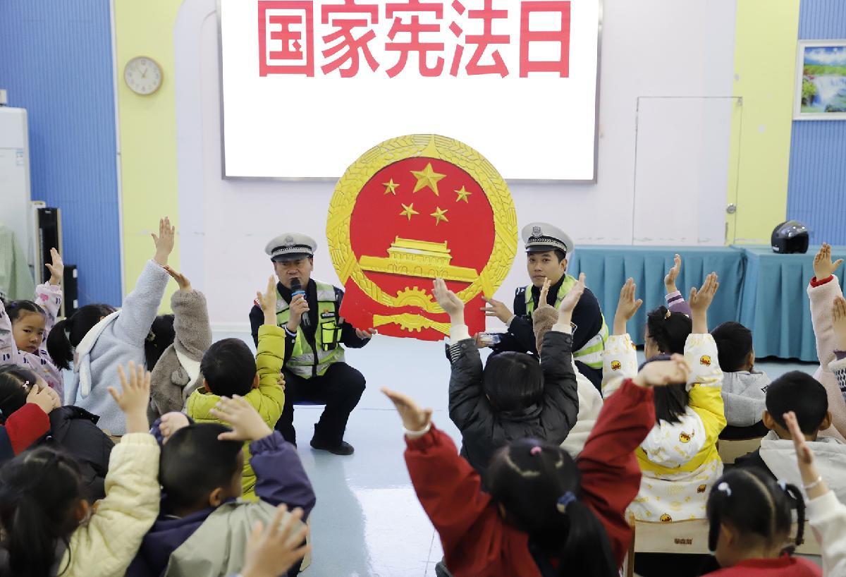 12月3日,甘肅省臨澤縣公安局城關(guān)派出所民警輔警走進(jìn)臨澤縣第二幼兒園,開展“國家憲法日”主題宣傳。
