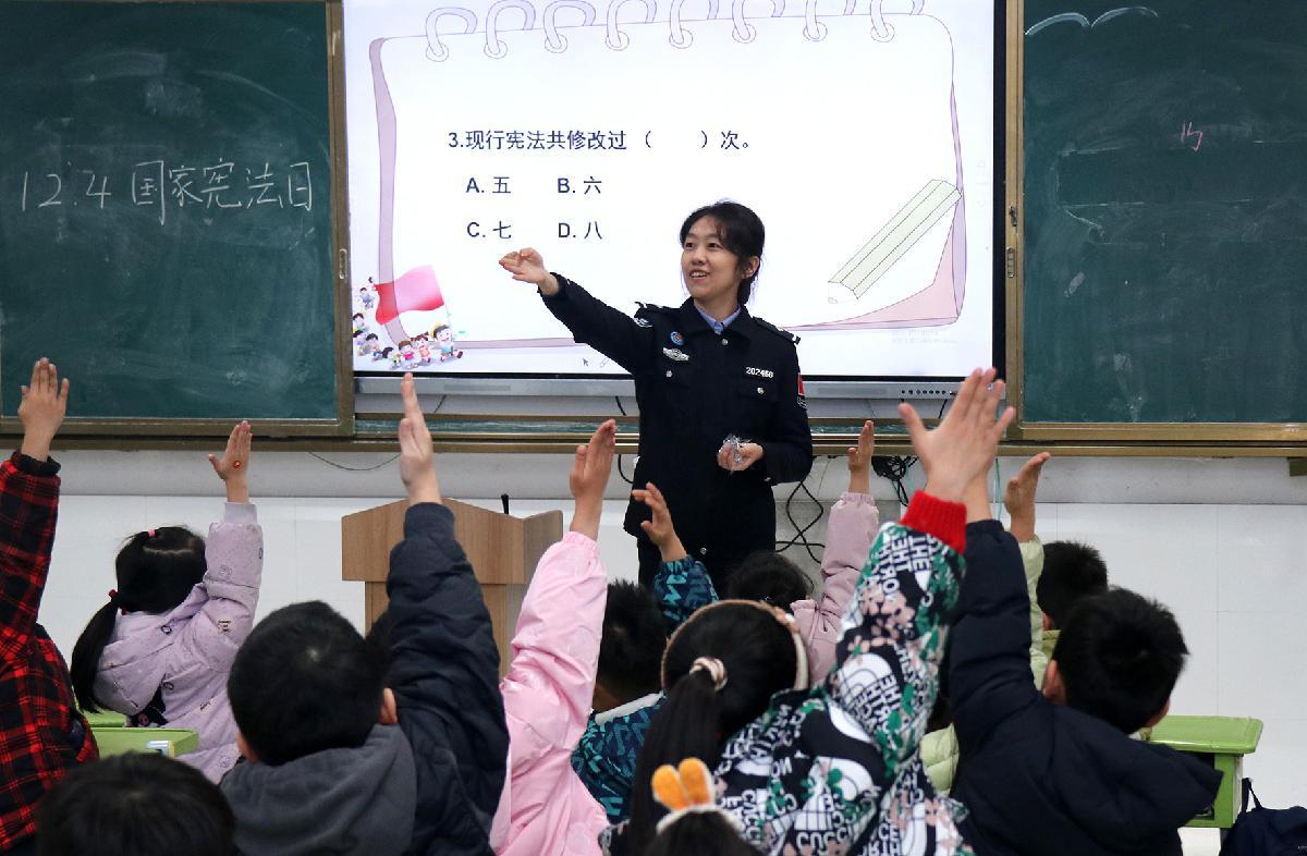 12月2日,江蘇泰州出入境邊防檢查站民警走進(jìn)泰州市鳳凰小學(xué),開展“知憲明法 與憲‘童’行”主題宣傳。