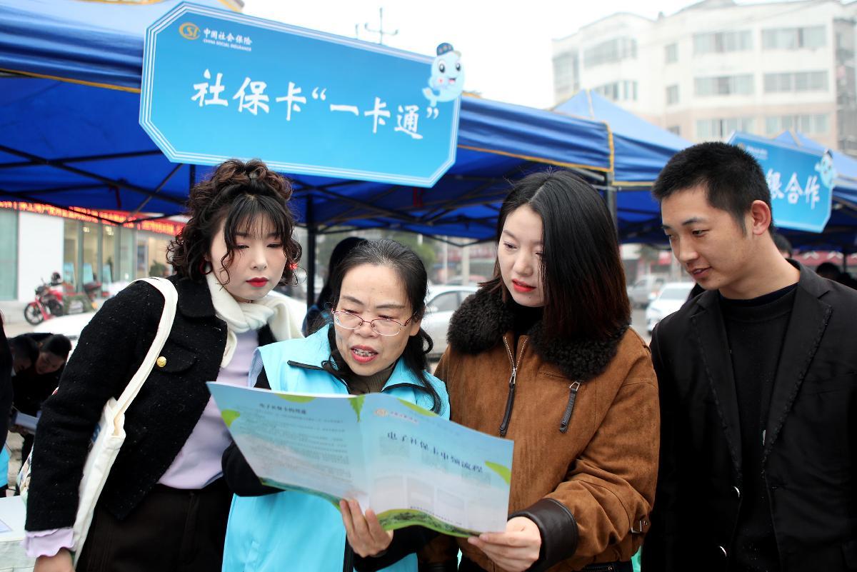 圖為工作人員為群眾講解社??ā耙豢ㄍā辈僮髁鞒?。