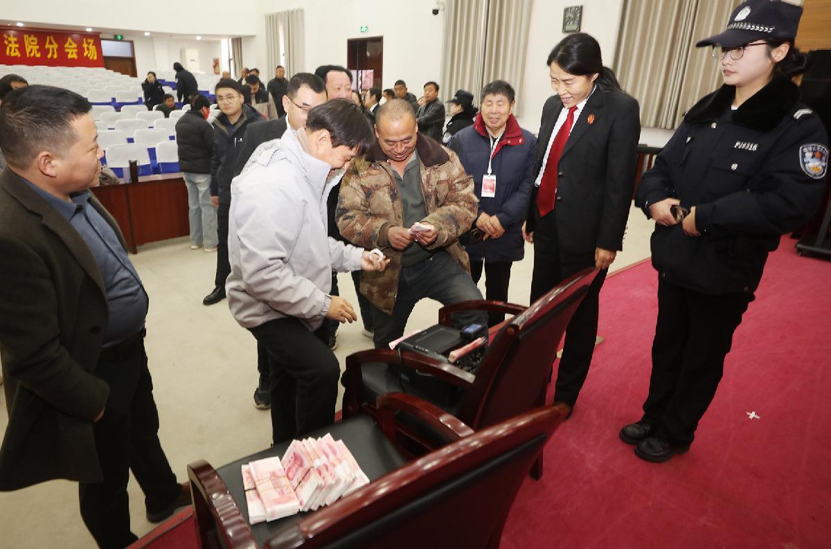 法官向村民們講解領(lǐng)款流程。