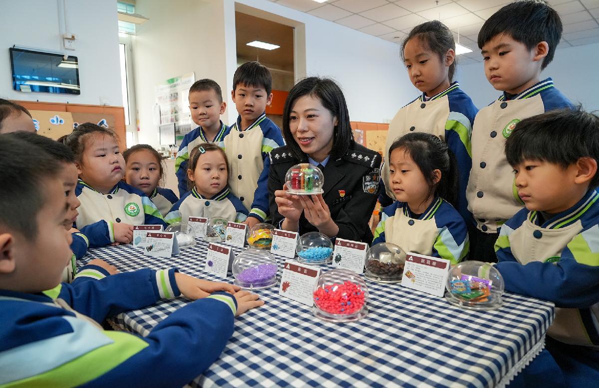 1月9日,山東省濟南市公安局市中分局民警來到福景幼兒園開設(shè)安全小課堂,普及禁毒、交通和防拐騙知識,提高孩子們的安全防范意識。
