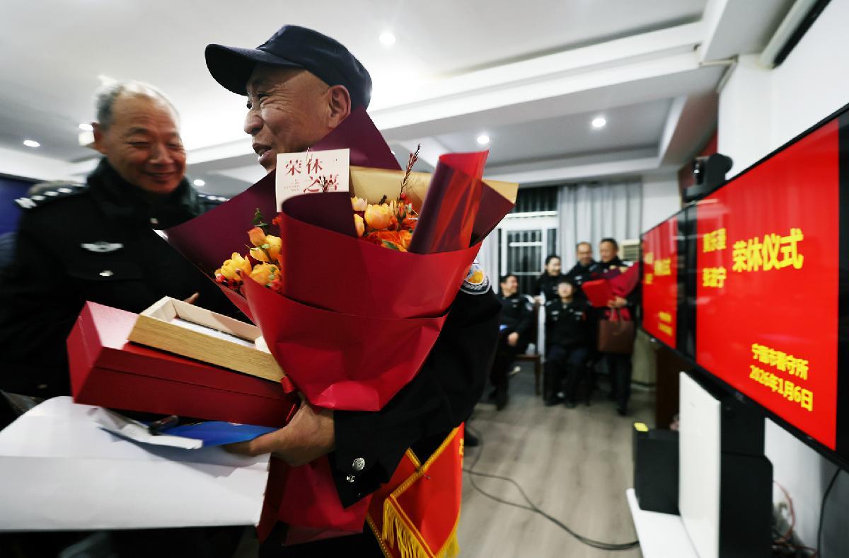 在第六個中國人民警察節(jié)來臨之際,1月6日,安徽省寧國市看守所舉行民警榮休儀式。
