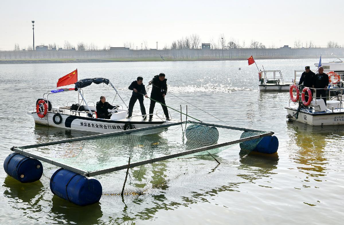 1月15日,安徽省阜南縣、霍邱縣、潁上縣農(nóng)業(yè)農(nóng)村行政執(zhí)法大隊(duì)聯(lián)合河南省信陽市、淮濱縣、固始縣農(nóng)業(yè)農(nóng)村行政執(zhí)法大隊(duì)開展冬季禁捕執(zhí)法專項(xiàng)行動(dòng),重點(diǎn)打擊跨區(qū)域非法捕撈、電魚行為,保護(hù)淮河生態(tài)環(huán)境及水生生物資源。
