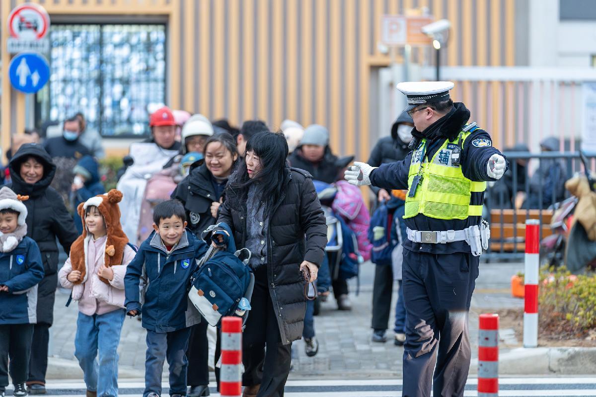 1月19日,上海地區(qū)迎來一輪寒潮降溫天氣。上海市公安局崇明分局交管支隊(duì)及時部署警力在學(xué)校周邊開展護(hù)校安園和交通疏導(dǎo)工作。