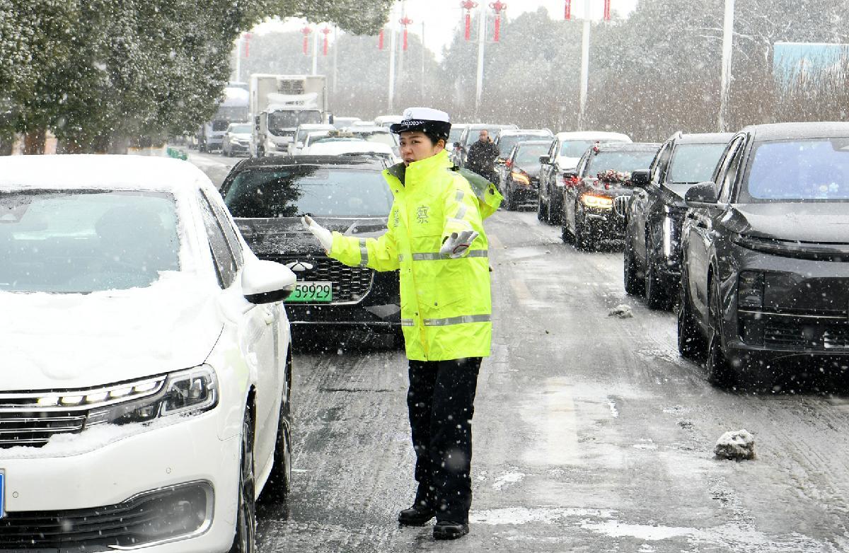 1月20日,安徽省舒城縣迎來入冬最強(qiáng)降雪。舒城縣公安局交管大隊(duì)顯性用警,在轄區(qū)重點(diǎn)路段、路口、橋梁等處指揮疏導(dǎo)交通,主動為民紓困,全力保障路面安全暢通。