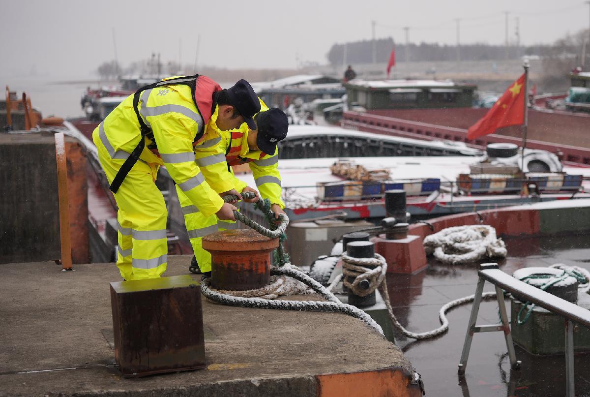 1月20日,長江航運(yùn)公安局南通分局海門派出所民警對南通海門滸通河河閘、新江海河河閘外側(cè)長江段水域待過閘船舶開展雨雪天氣專項(xiàng)安全檢查。