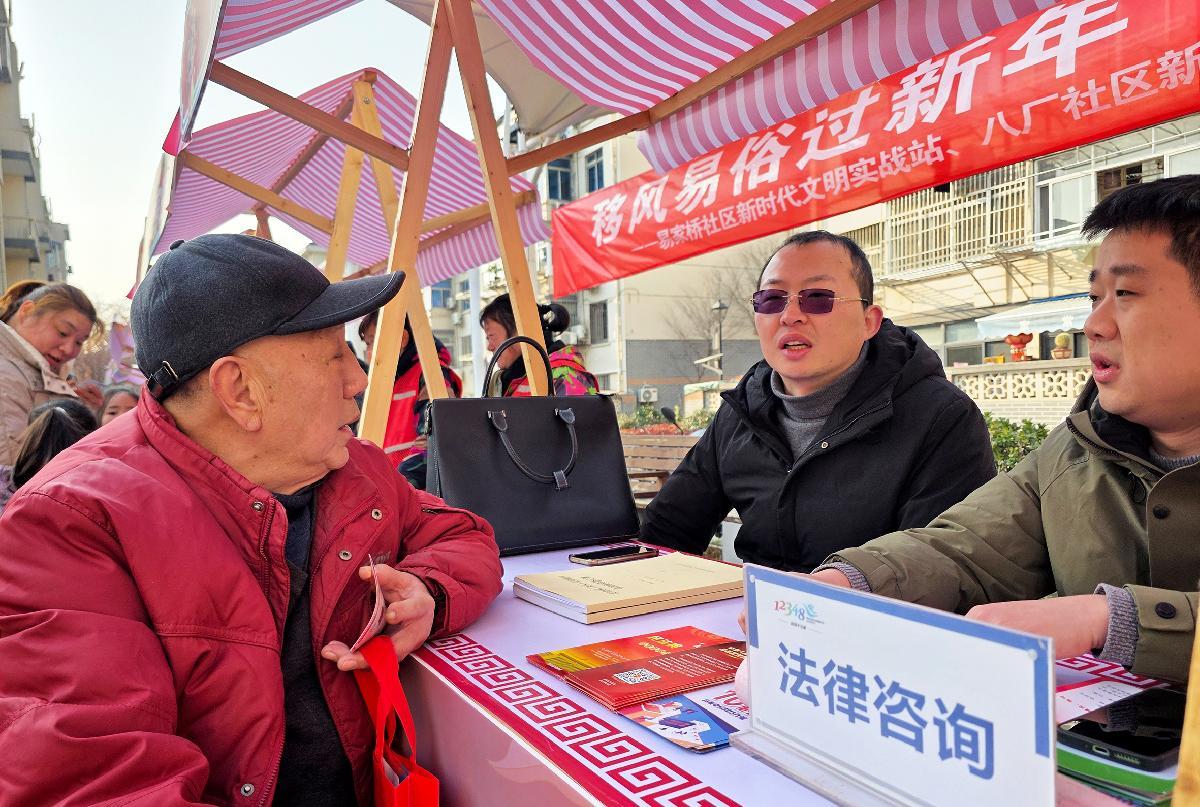 1月23日,江蘇省南通市崇川區(qū)新城橋街道組織民警和律師走進新春公益集市,為社區(qū)居民提供法律咨詢服務和反詐宣傳。