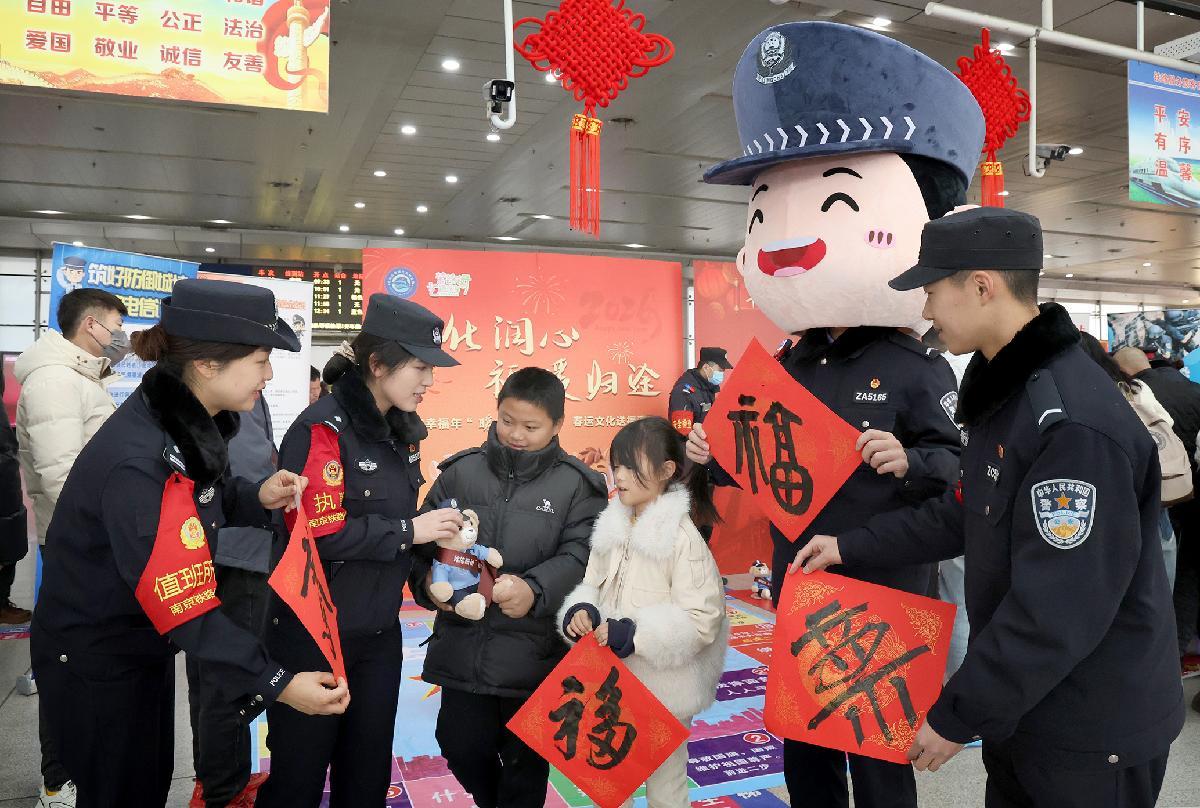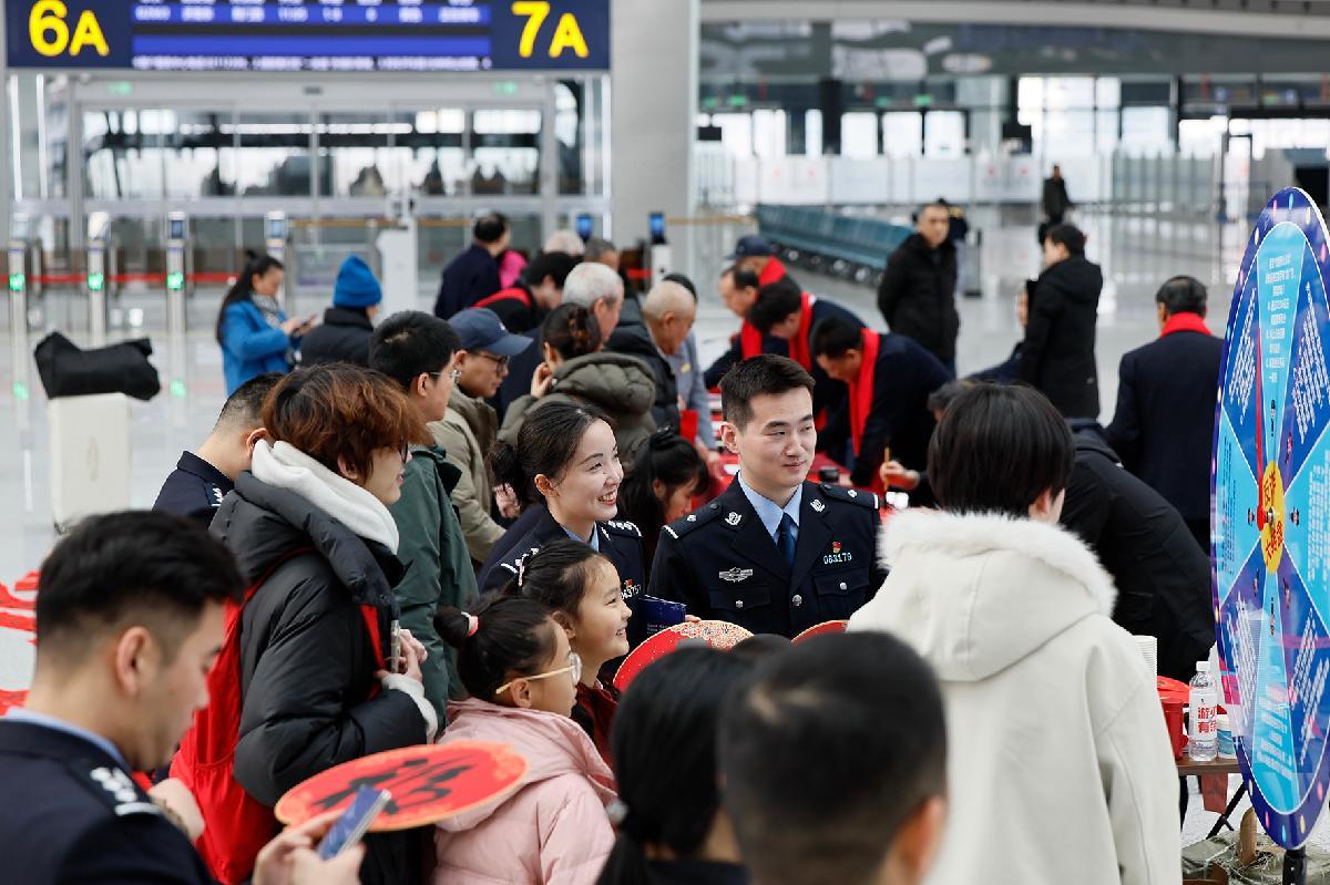 2月2日,合肥鐵路公安處在合肥西站候車室開展寫春聯(lián)送福字、安全知識有獎問答等活動。