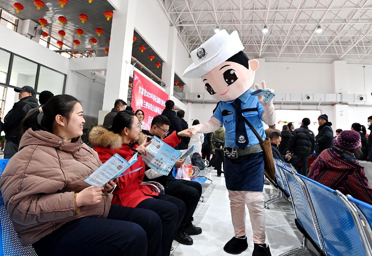 2月2日,甘肅省蘭州市公安局在蘭州市汽車新東站開展春運啟動日安全宣傳。