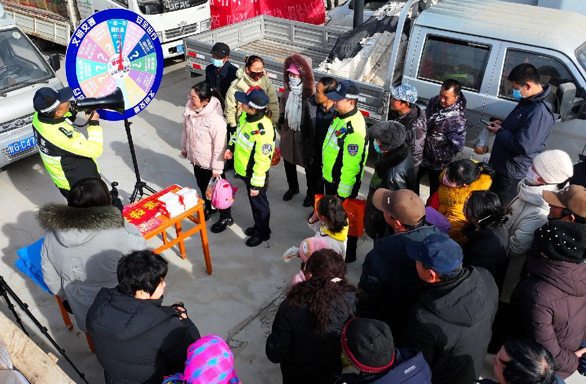 2月2日,甘肅省臨澤縣公安局交管大隊(duì)民輔警來到蓼泉鎮(zhèn)年貨市場,通過有獎(jiǎng)競答、體驗(yàn)VR、發(fā)放宣傳資料等方式開展交通安全宣傳。