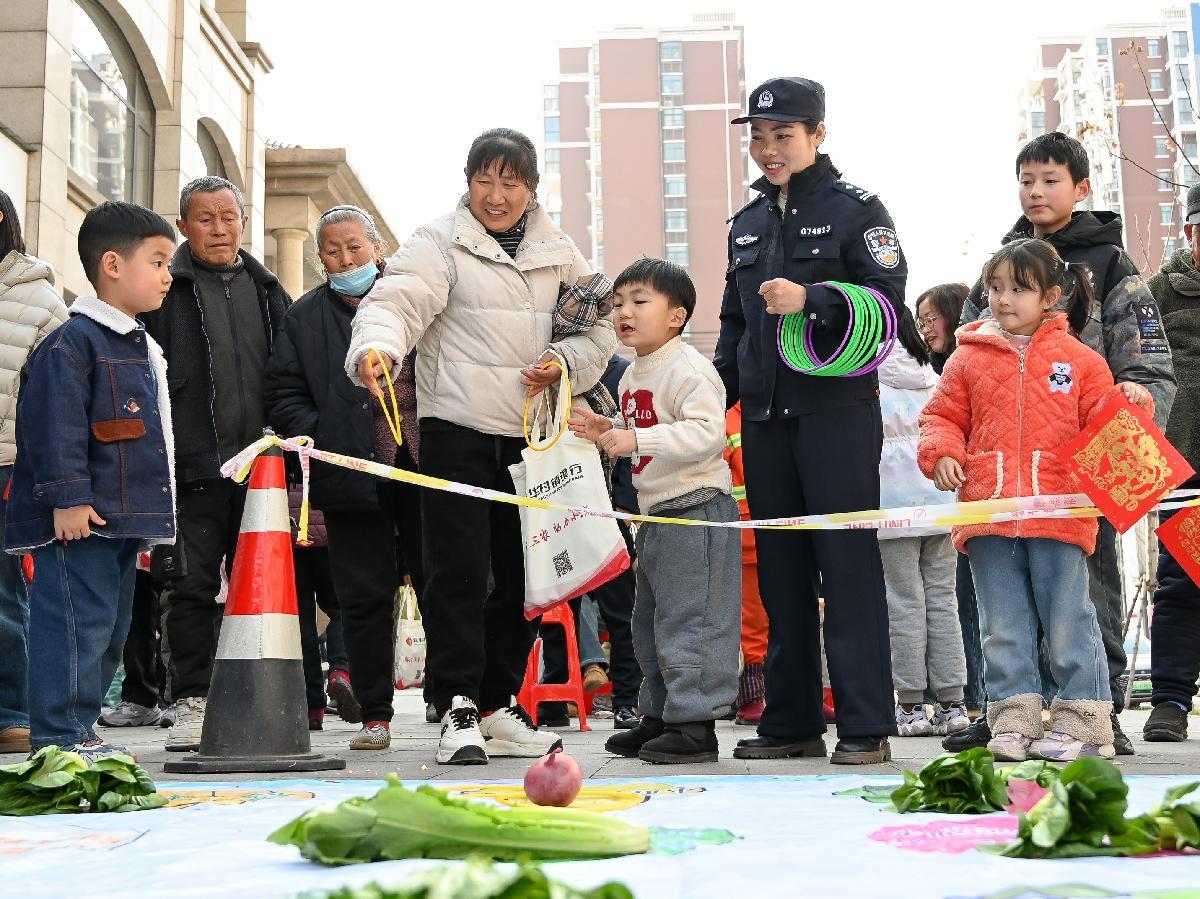 2月5日,安徽省馬鞍山市和縣公安局民警在禹錫社區(qū)開(kāi)展“套圈”有獎(jiǎng)趣味活動(dòng),讓群眾在寓教于樂(lè)中提升防騙識(shí)騙能力。