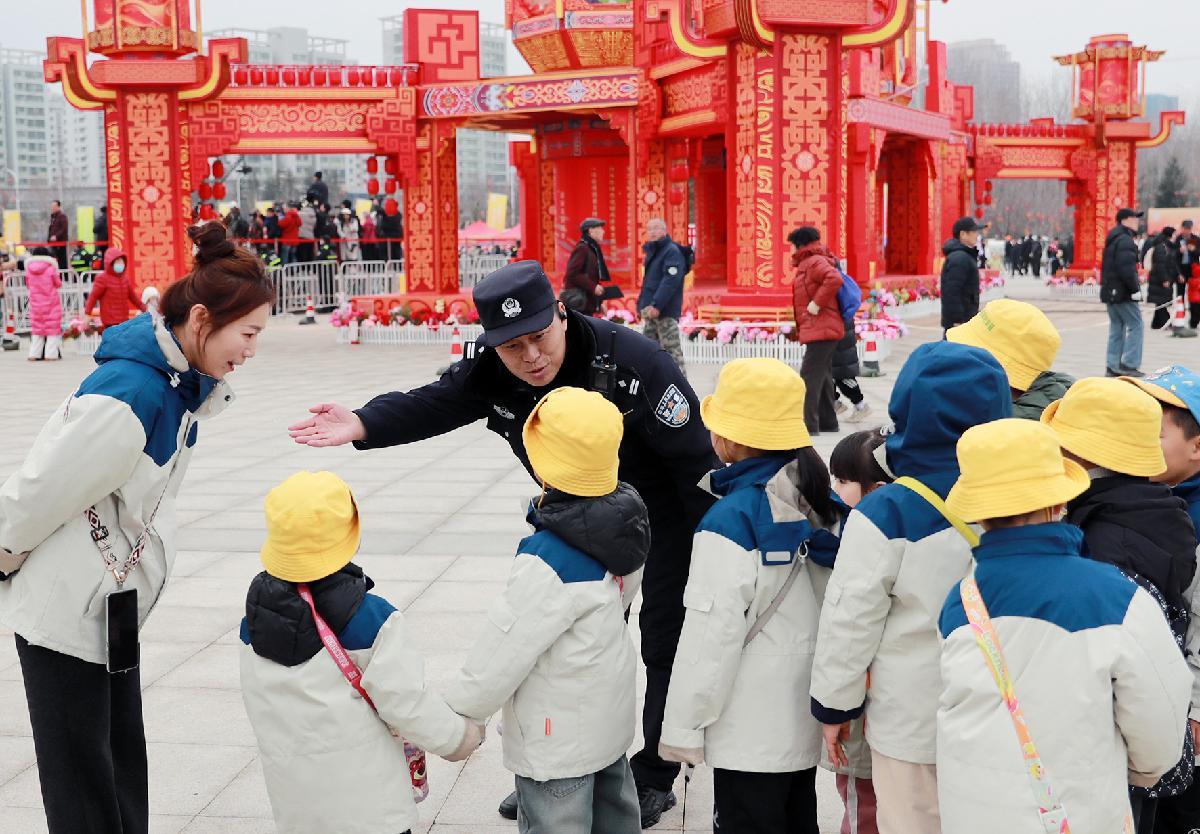 2月26日,山東省煙臺市公安局萊山分局民輔警在慶新春民間秧歌展演暨非遺大集活動現(xiàn)場進行服務保障工作。